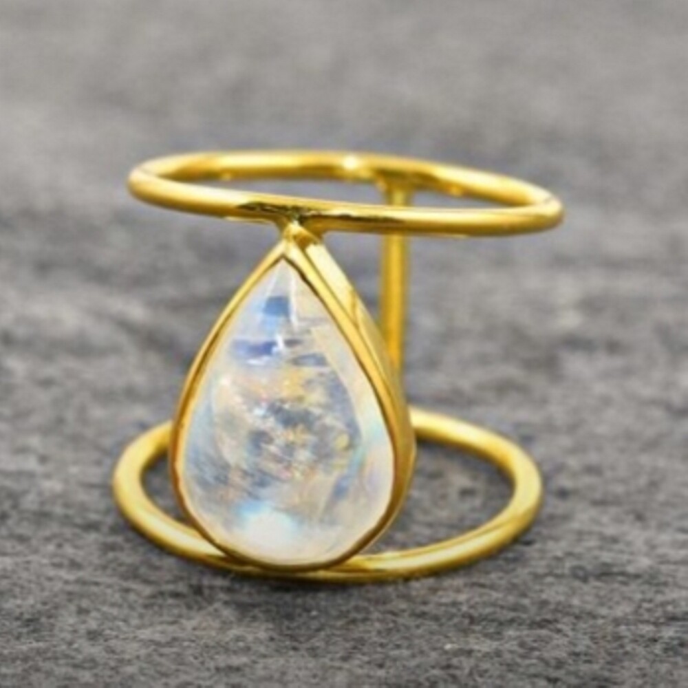 как выглядит Beautiful Moonstone Gemstone Gold Plated 925 Sterling Silver Ring Gift D-293 фото