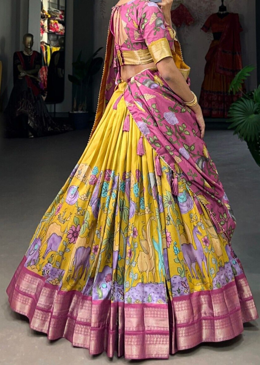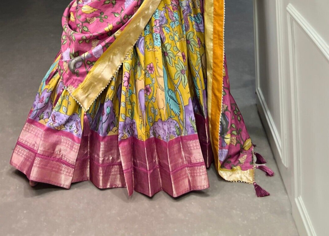 Lehenga Work: Kalamkari Print With Zari Weaving Border