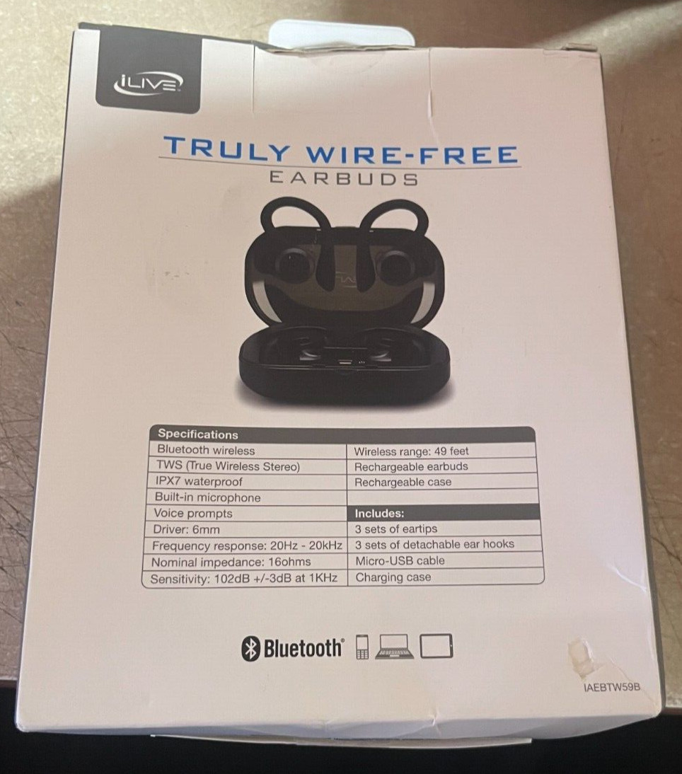 iLive-True-Wireless Waterproof Earbuds IAEBTW59B, Black/Fluorescent Yellow