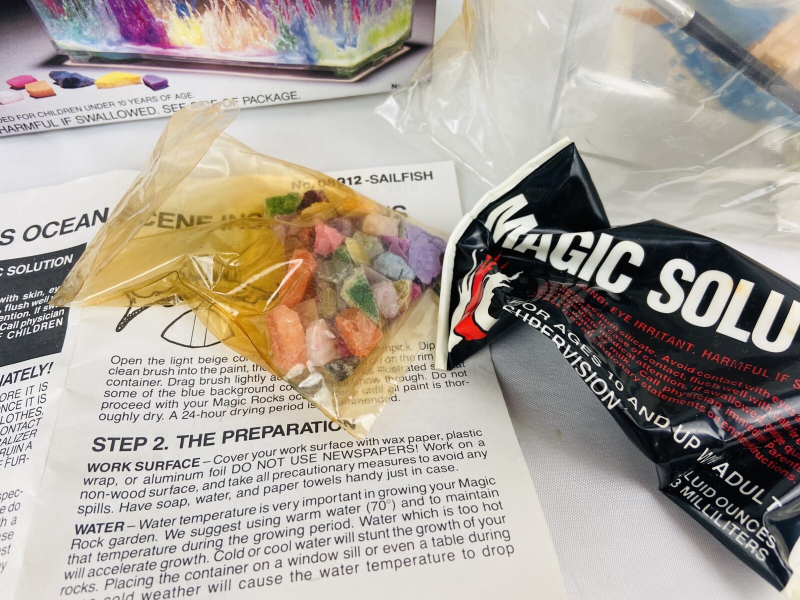 NOS 1990 s Original Magic Rocks Instant Crystal Growing Kit Sail Fish 08912 USA