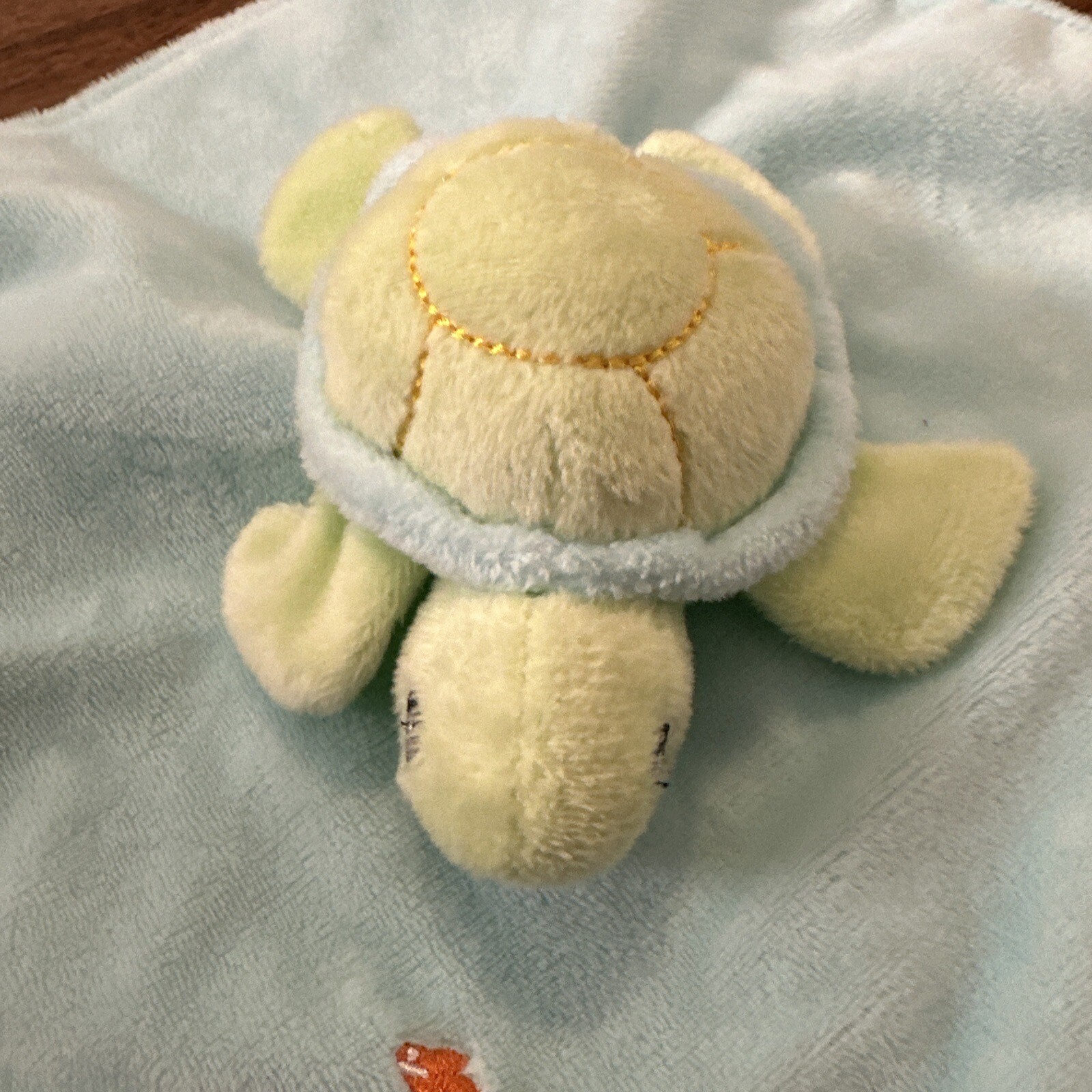 как выглядит Stephan Baby Sea Turtle Lovey Security Blanket Teether Green Blue Orange Stripes фото