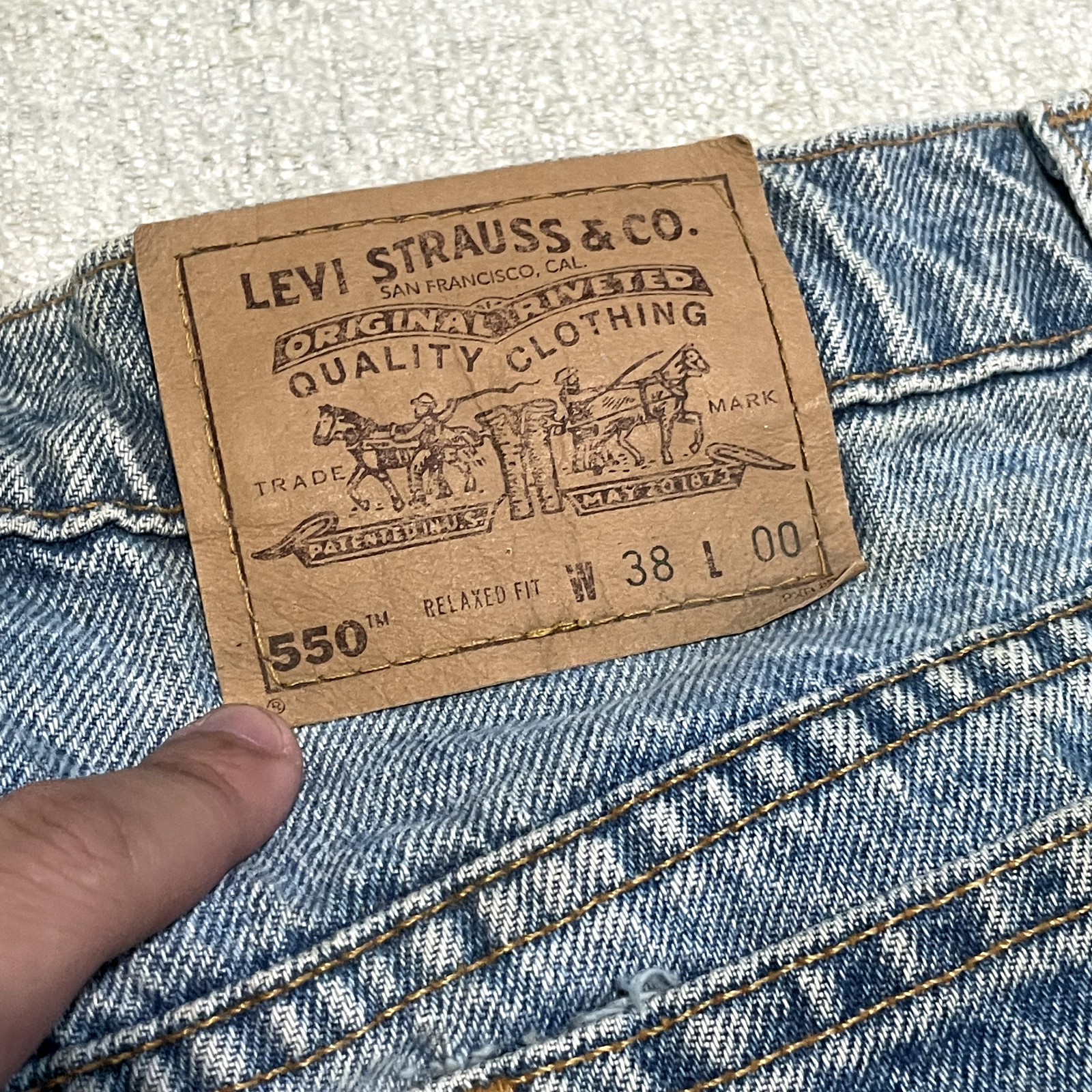 как выглядит Vintage Levis 550 Relax Fit Orange Tab Denim Shorts Mens 38 Blue - STAINED фото