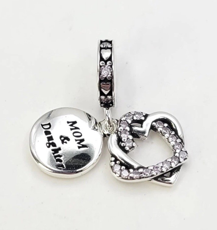 как выглядит 925 Sterling Silver Mother And Daughter Charm Pendant, Interlocking Hearts фото