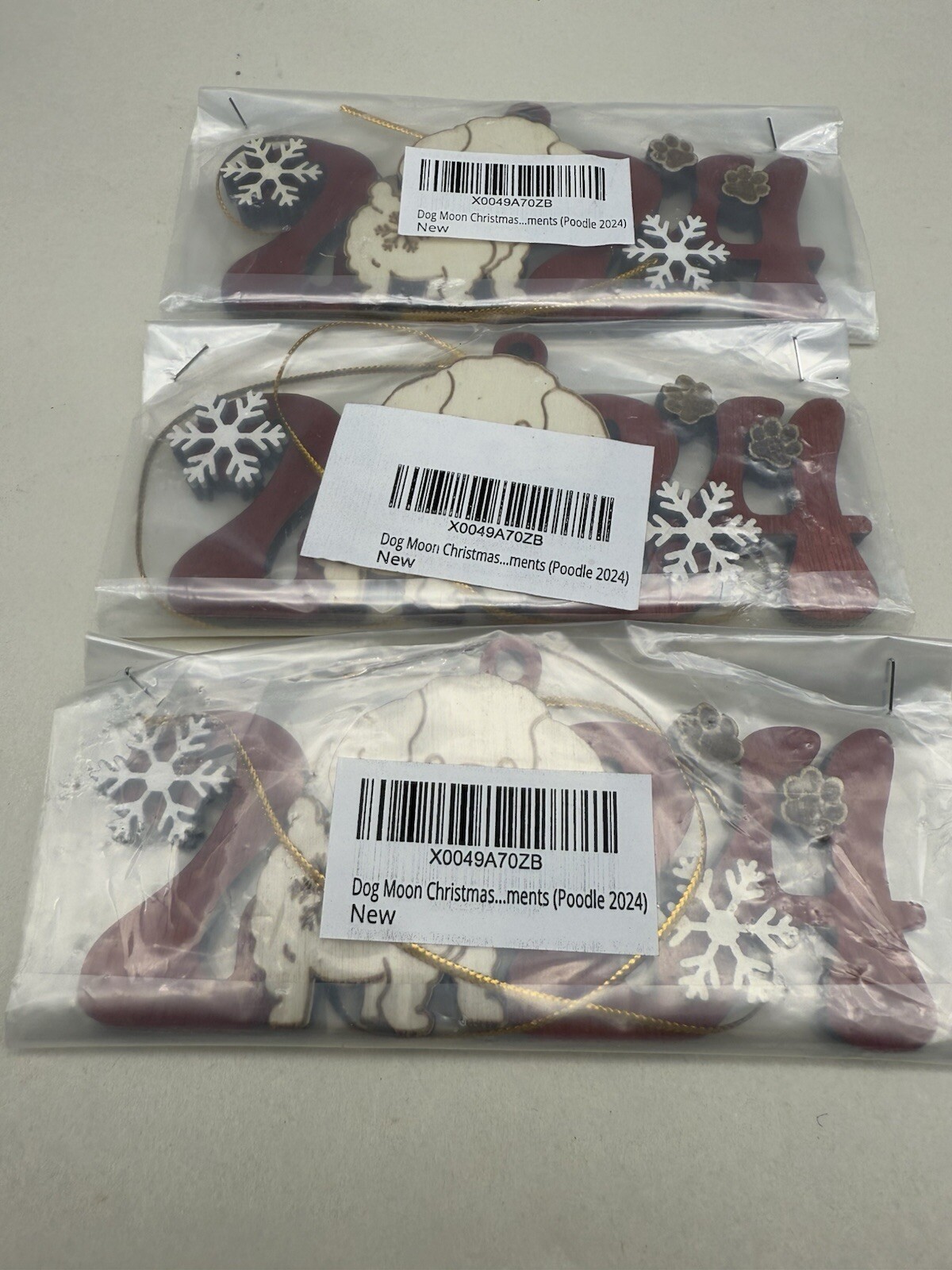 как выглядит 3PC Poodle 2024 Wooden Christmas Ornament, Fun and Cute Dog Wooden Decor READ фото
