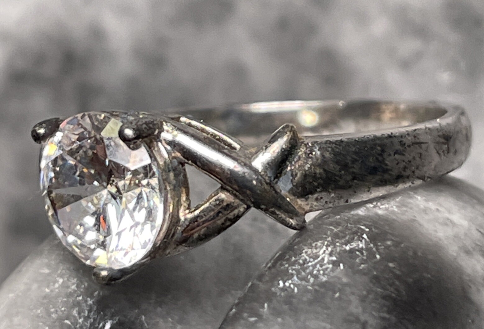 как выглядит Vintage Sterling Silver Knotted Band CZ Engagement Ring Size 8 фото