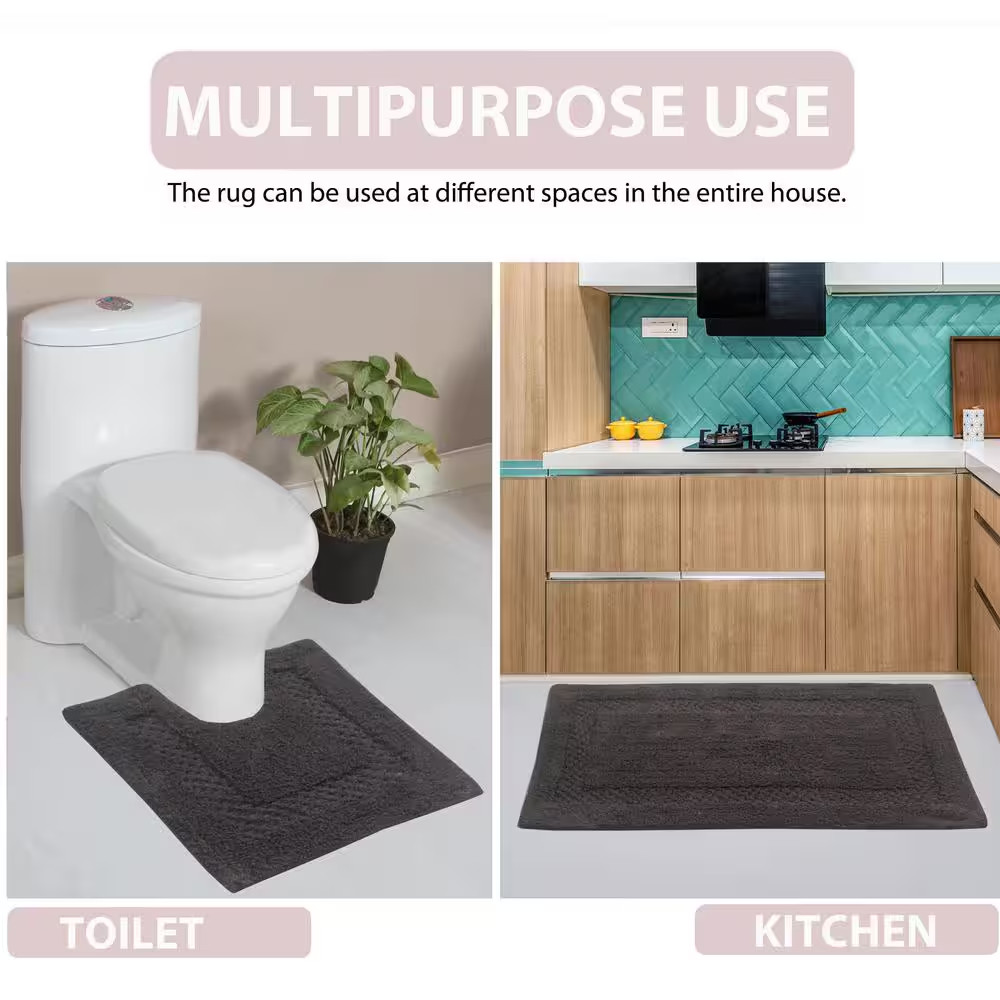 Classy 100 Cotton Bath Rugs Set, Machine Wash, 5-Pcs Set with Contour, Gray