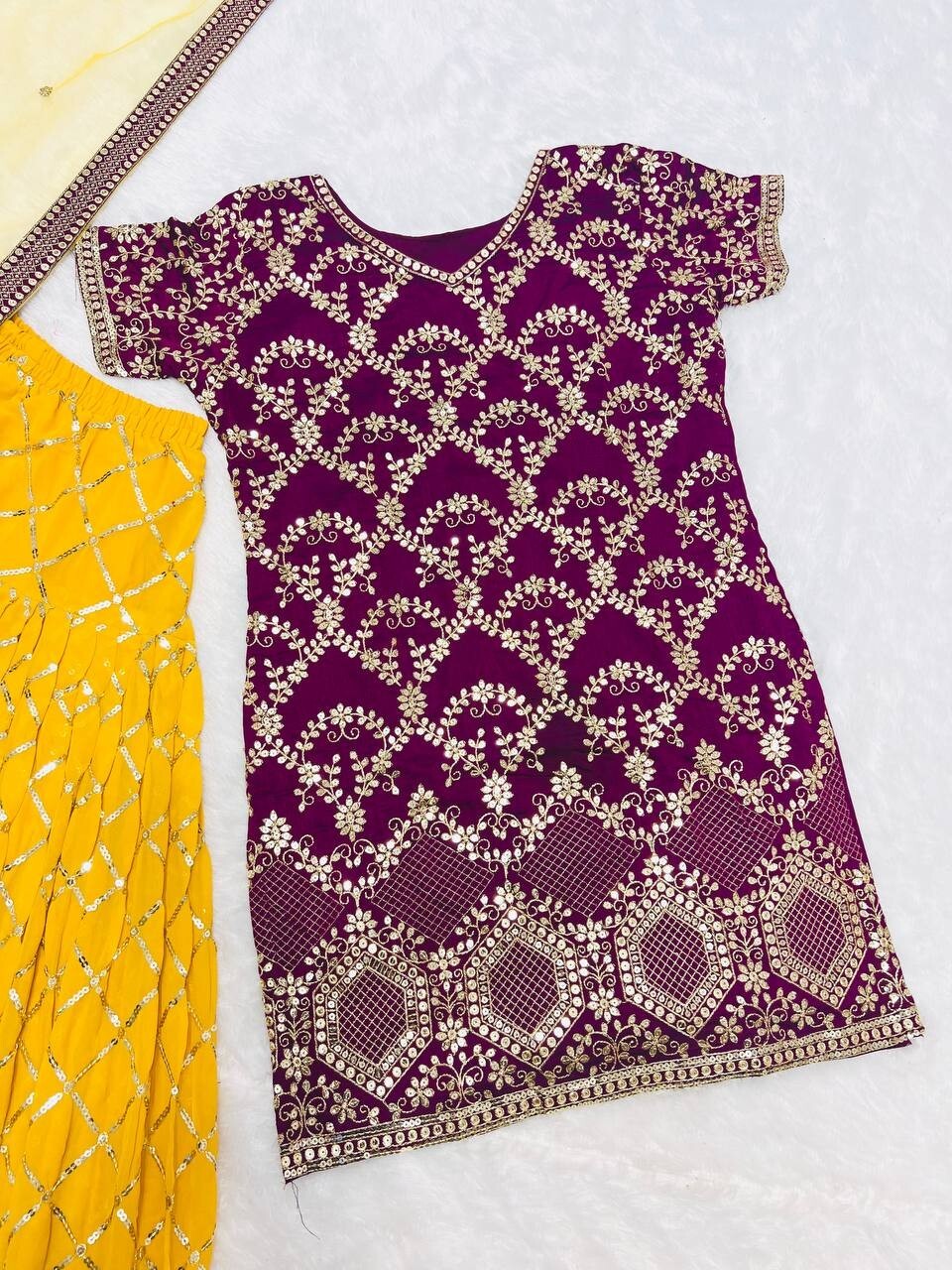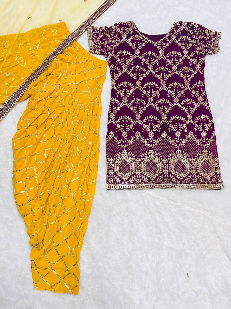 New Unique Vichitra Silk Top And Yellow Dhoti With Fancy Dupatta For Party