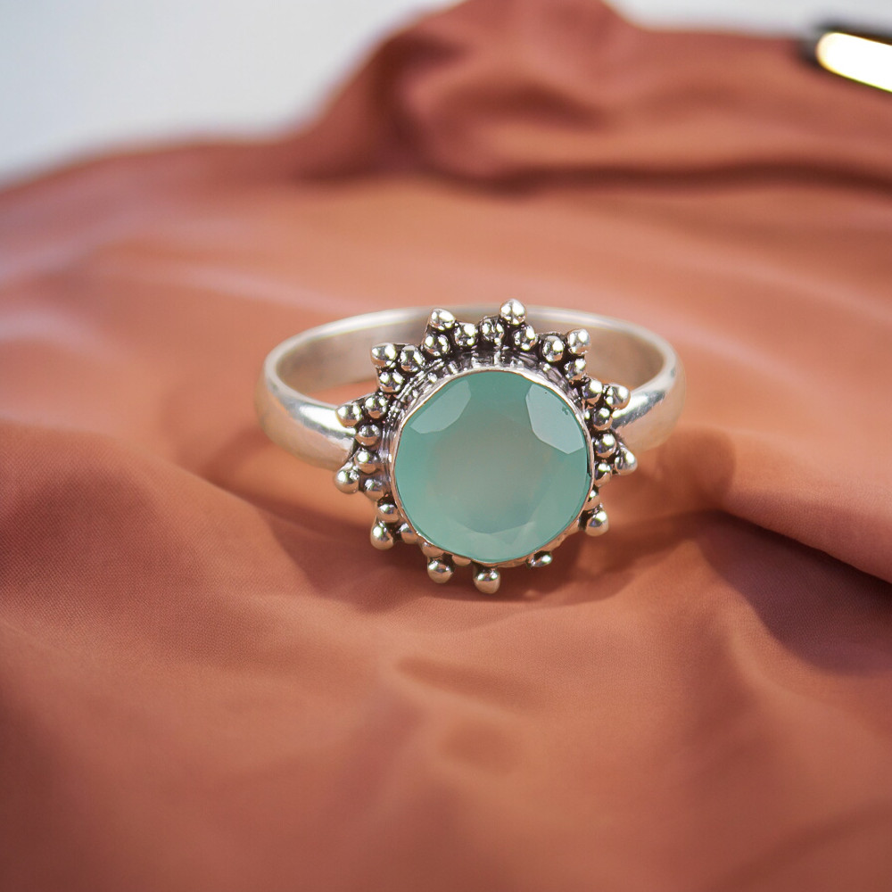 Certification: 100% Genuine Natural Aqua Chalcedony Ring