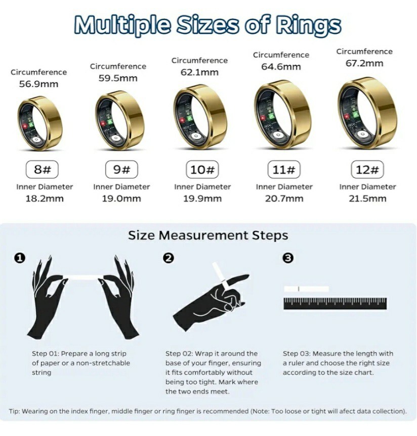 как выглядит Smart Ring Health Tracker, Sleep Tracker Ring with Heart Rate Waterproof GOLD 9 фото