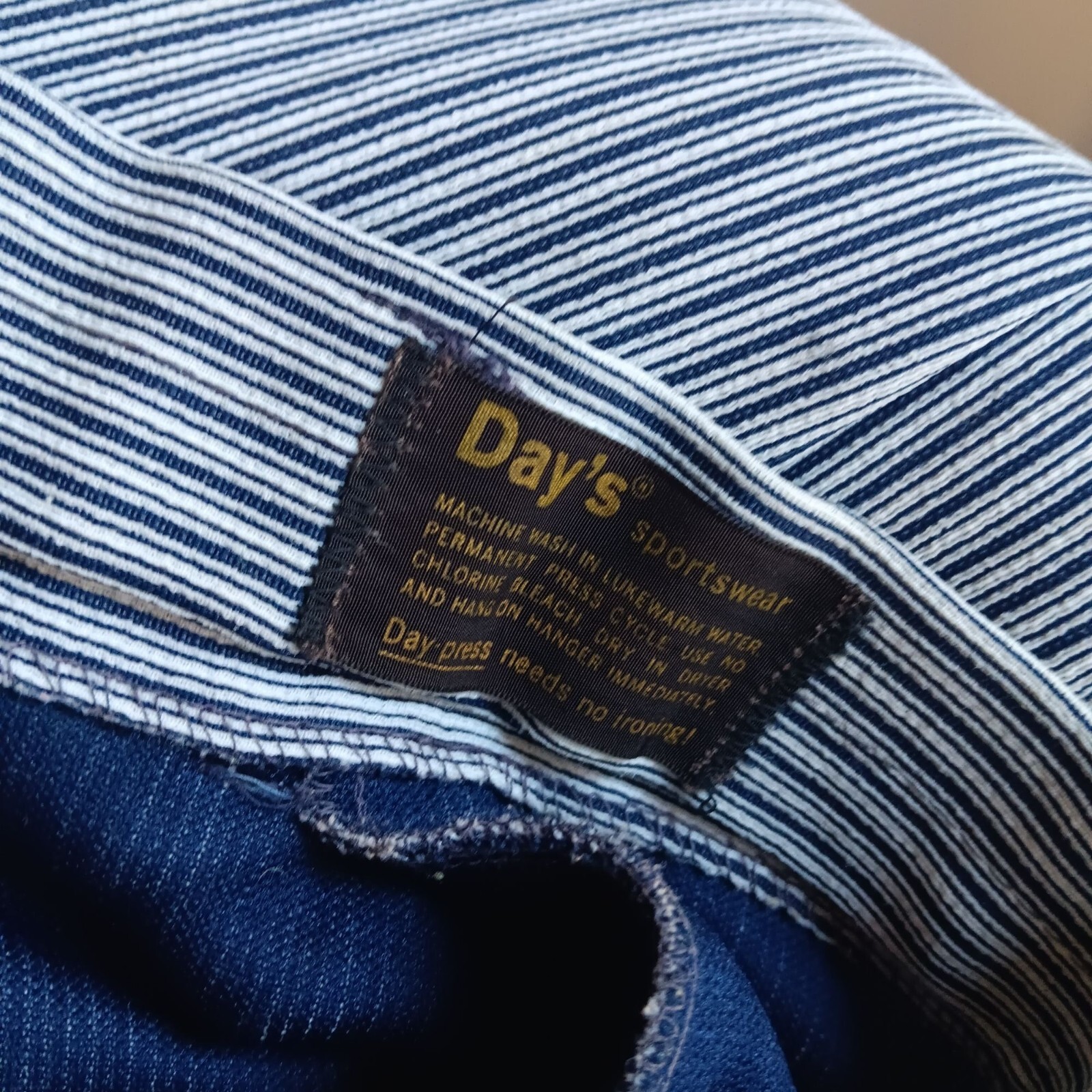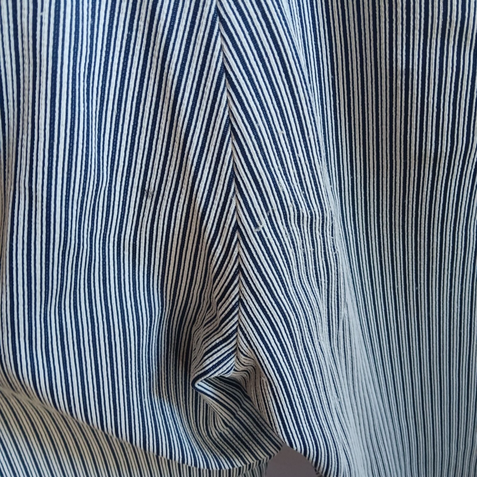 как выглядит 36x33 Mens Vintage 1970s Polyester Pants Bootcut Blue/White Striped Distress фото
