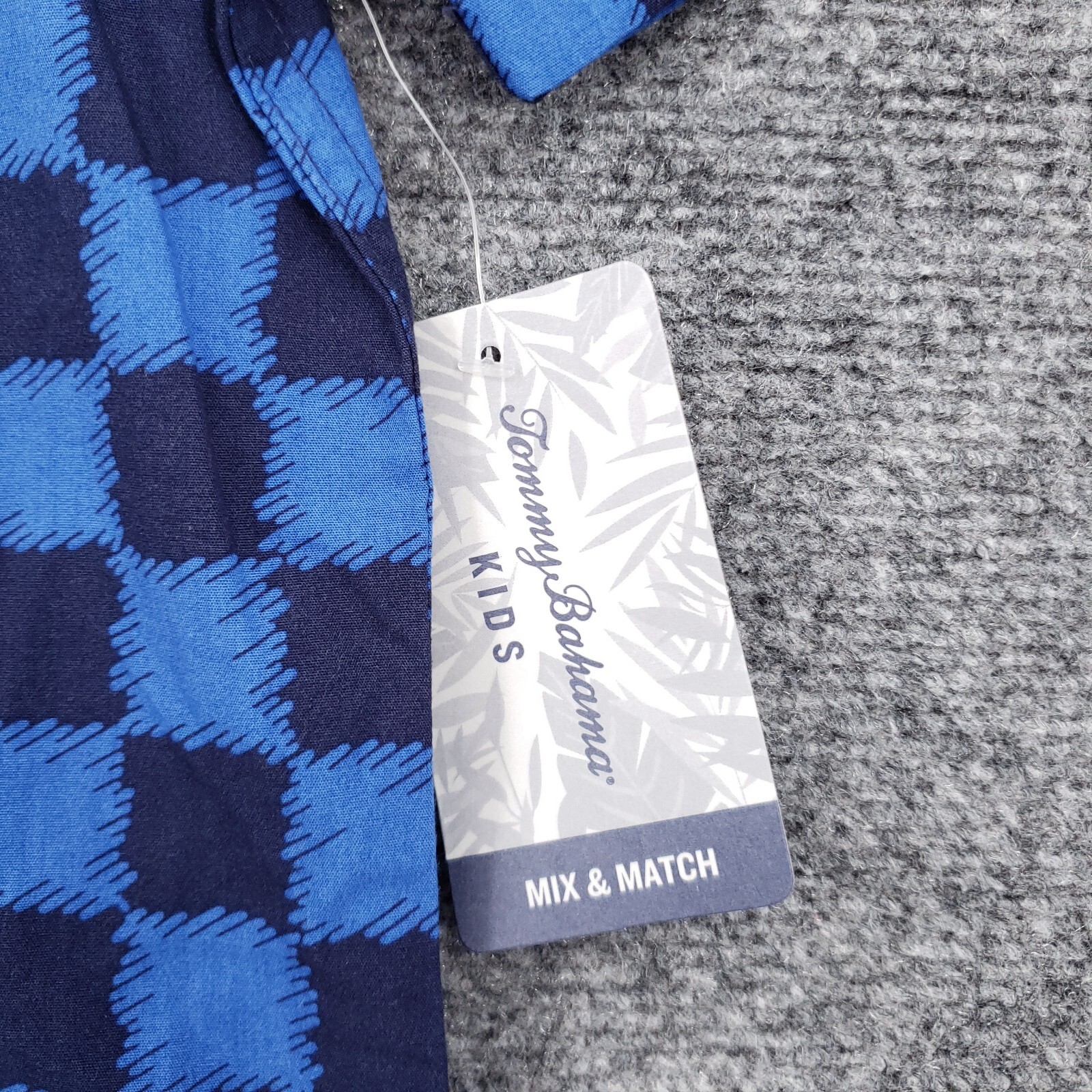 NEW Tommy Bahama Button Up Shirt Boys S Small 5/6 Blue Checkered Short Sleeve