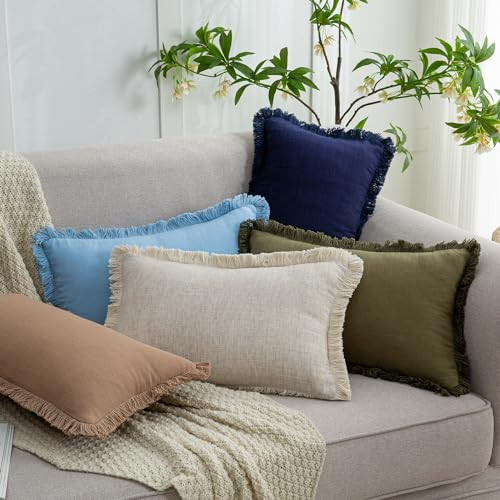 Throw Pillow Covers 12x20 Inch Set of 2 with Tassel Trim for Farmhouse Living
