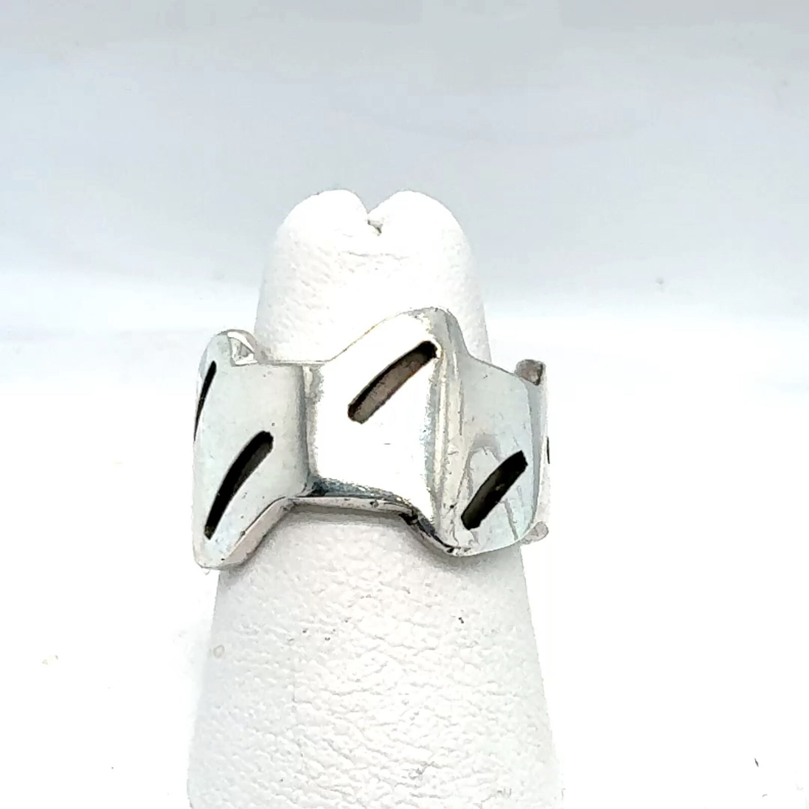 Sterling Silver Abstract Wide Band Ring - Size 6.5