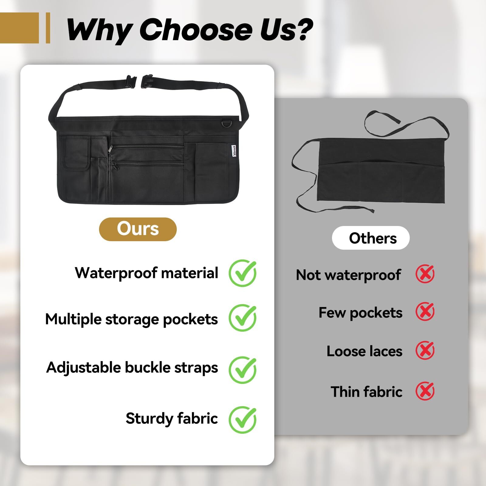 Waitress Apron Server Apron with 7 Pockets Black Half Apron with Zippers Ad...