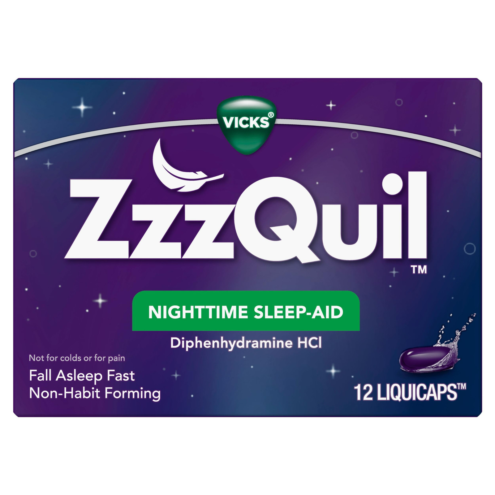 как выглядит ZzzQuil LiquiCaps Sleep Aid 12 Count Fast Acting Non Habit Forming 50mg фото