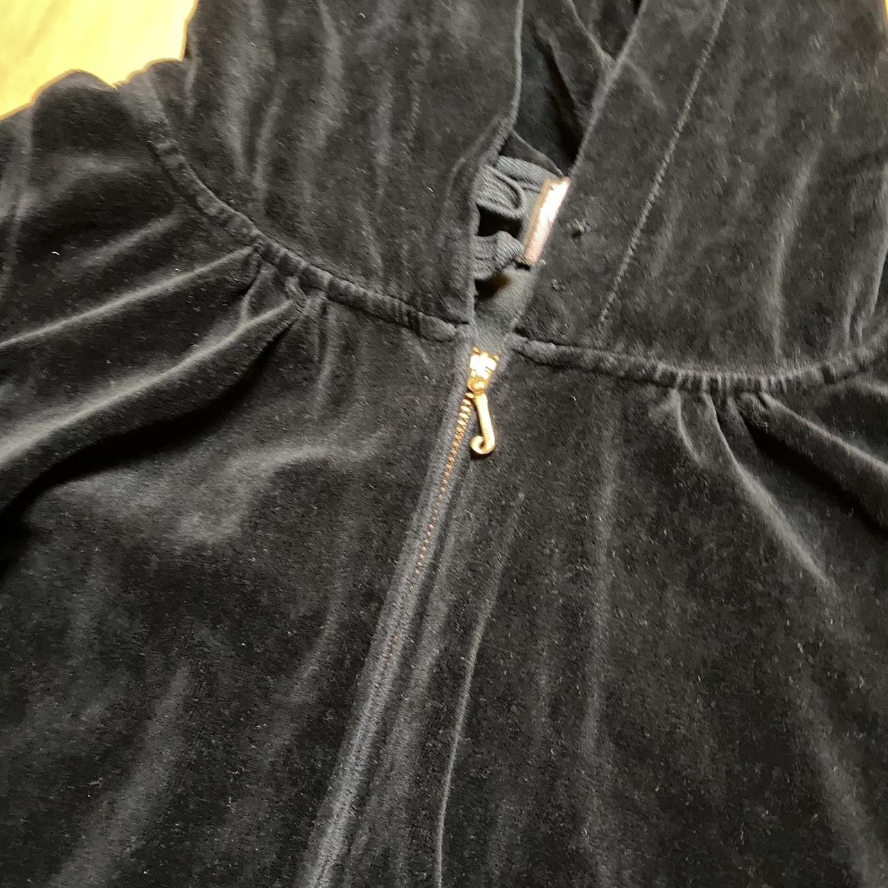 как выглядит Juicy Couture Womens Black Velour Fabric Zip Up Hoodie Sweatshirt Size Large фото