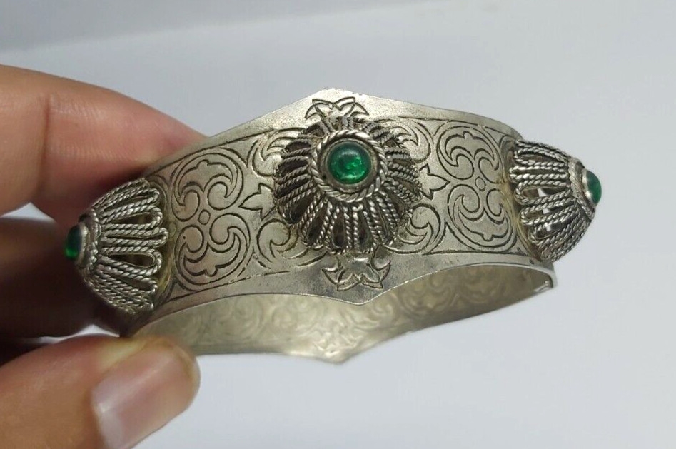 VINTAGE AFRICAN BRACELET COLOR SILVER BERBER TUAREG TRIBAL CUFF ETHNIC BOHO