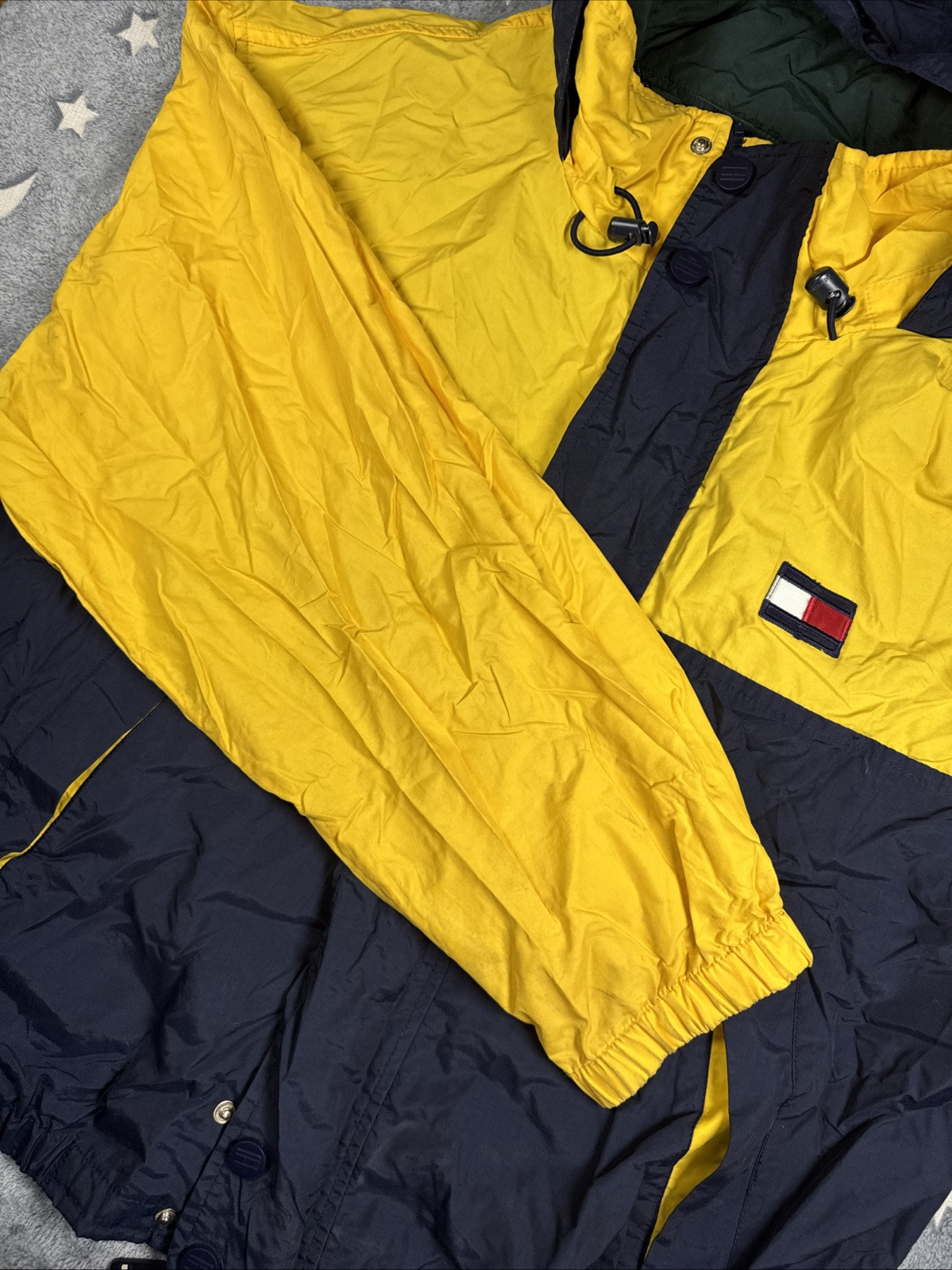 как выглядит Vintage 90s Tommy Hilfiger Color Block Windbreaker Hood Jacket Mens XL Spellout фото