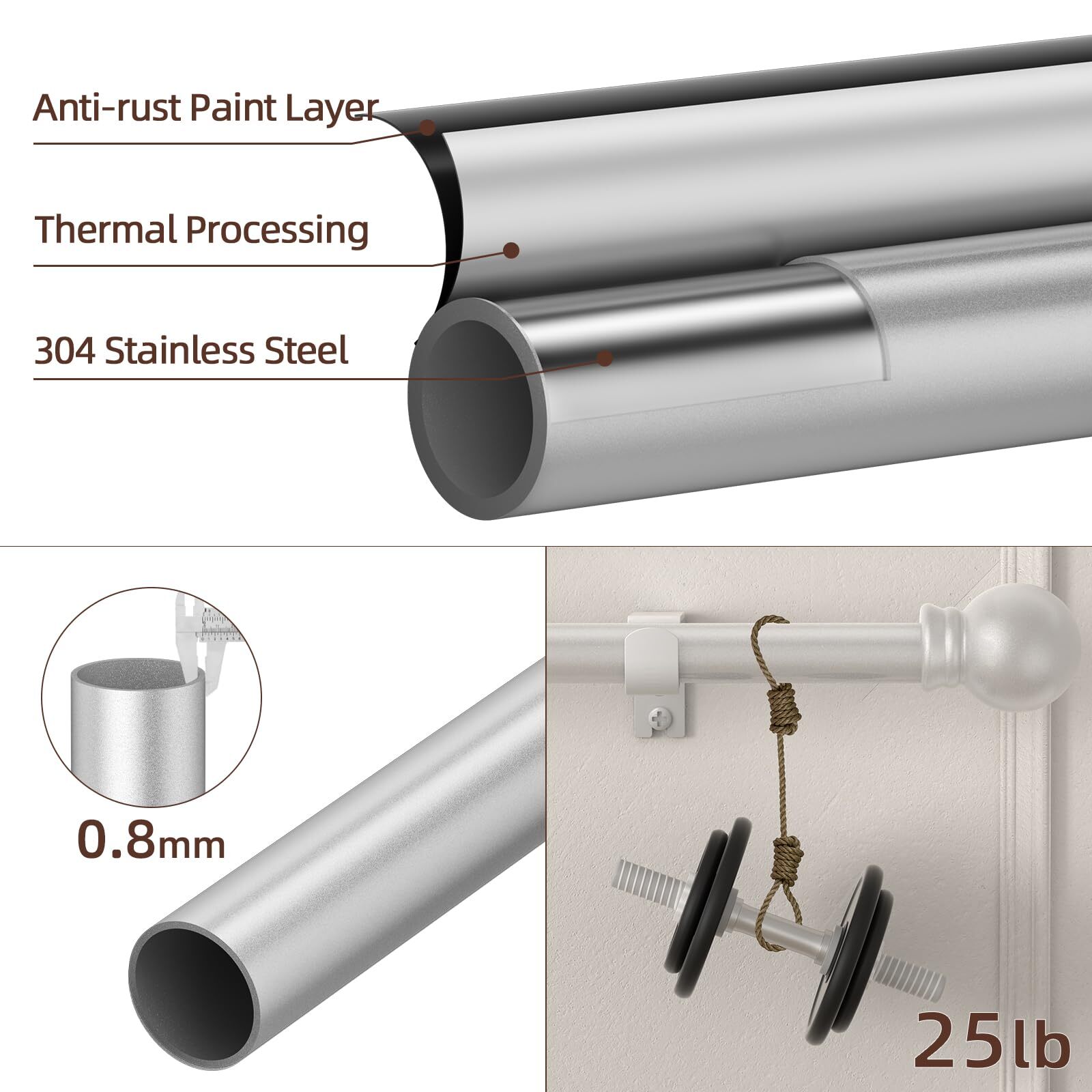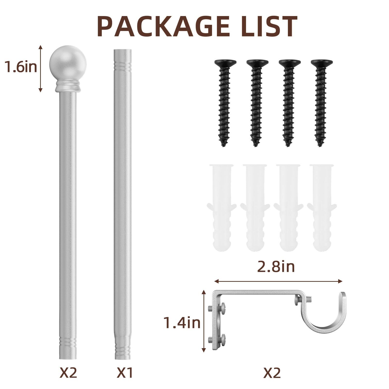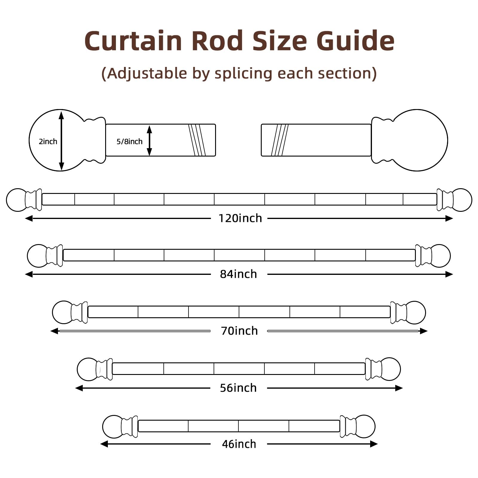Curtain Rods for Window 32 and 48 Silver 5/8 inch Splicing Single Window Curt...