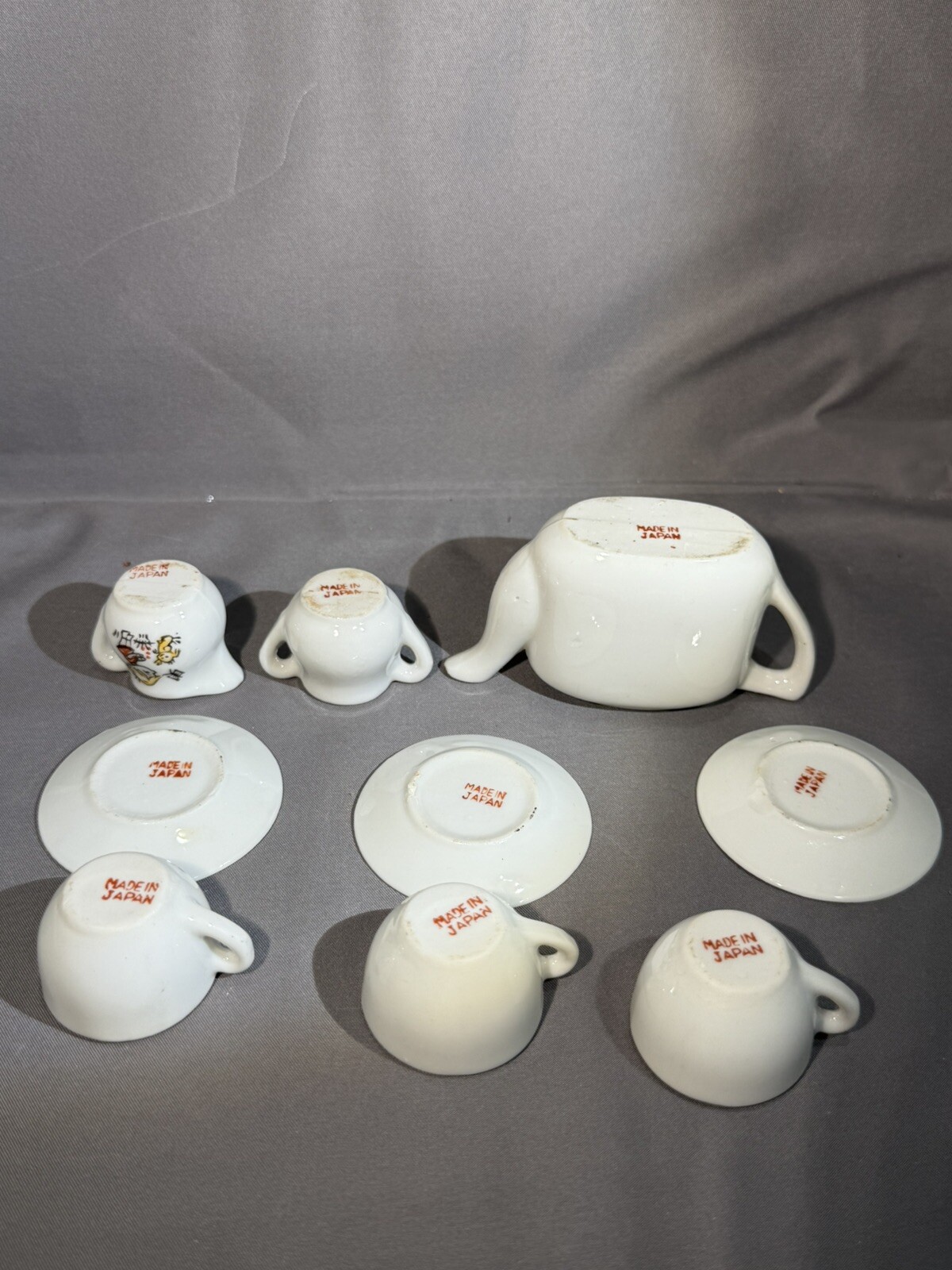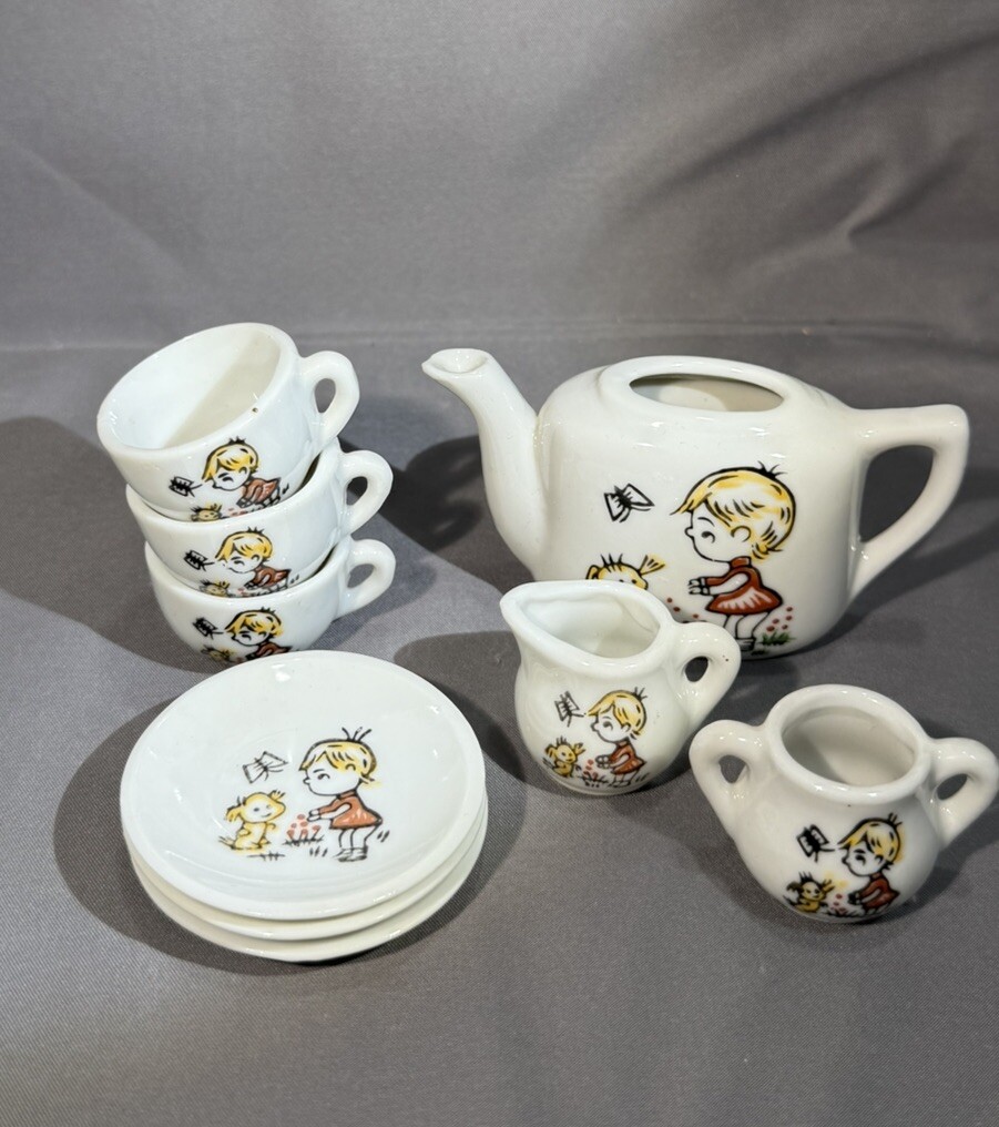 Japan Ceramic Miniature Tea Set 9 Pieces Blonde Girl Flowers Toy Vintage
