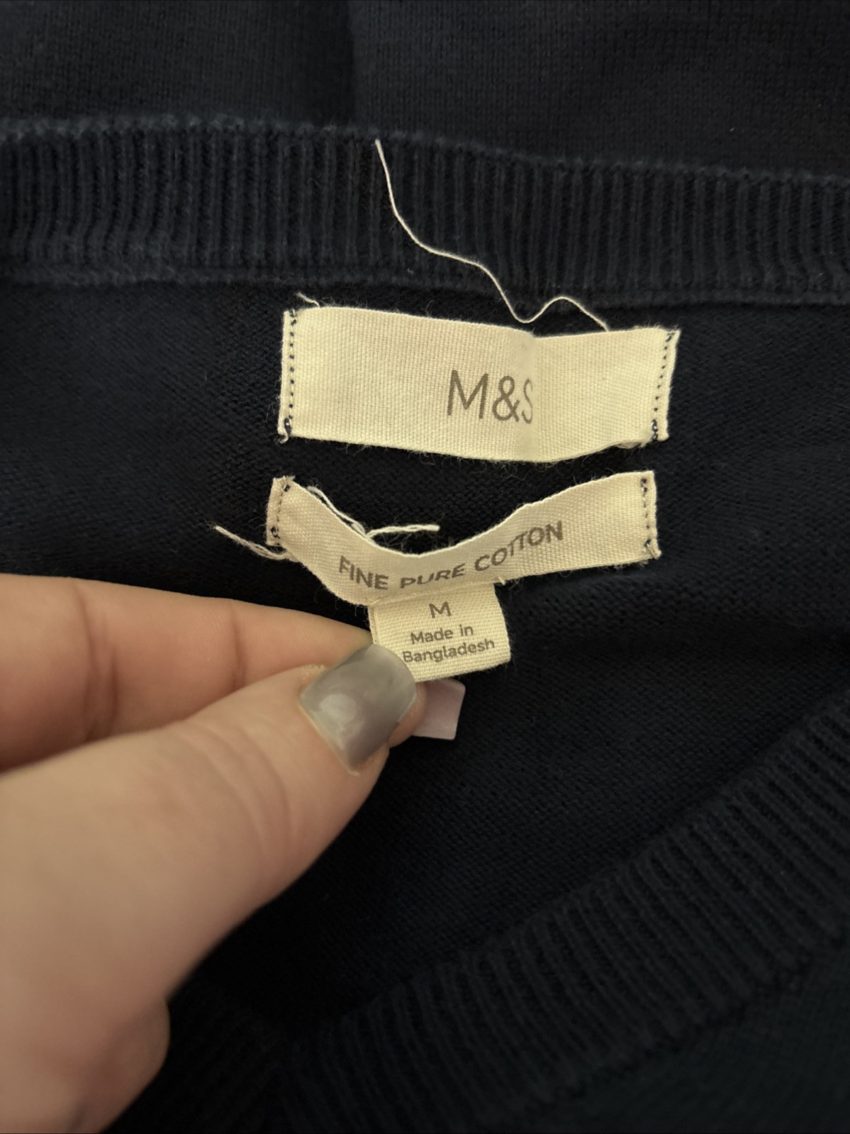 как выглядит Mens M S Marks spencer Medium Navy Blue Thin Knit Pullover Jumper Sweater Top фото
