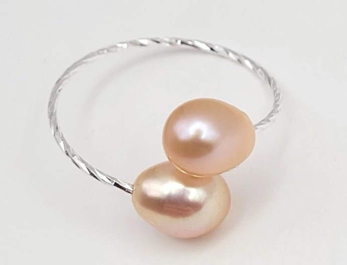 925 Sterling Silver Adjustable Peach Freshwater Pearl Ring