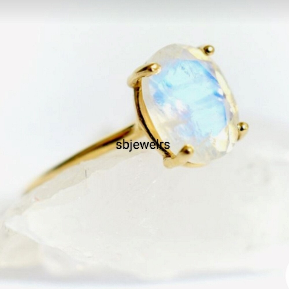 Natural Moonstone Gold Plated Gemstone 925 Sterling Silver Ring For Mother D-515