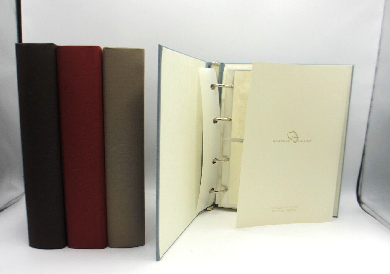 Photo Album 8x9 Ring Binder Fabric Cover 72 Clear Pockets Graphic Image Sand