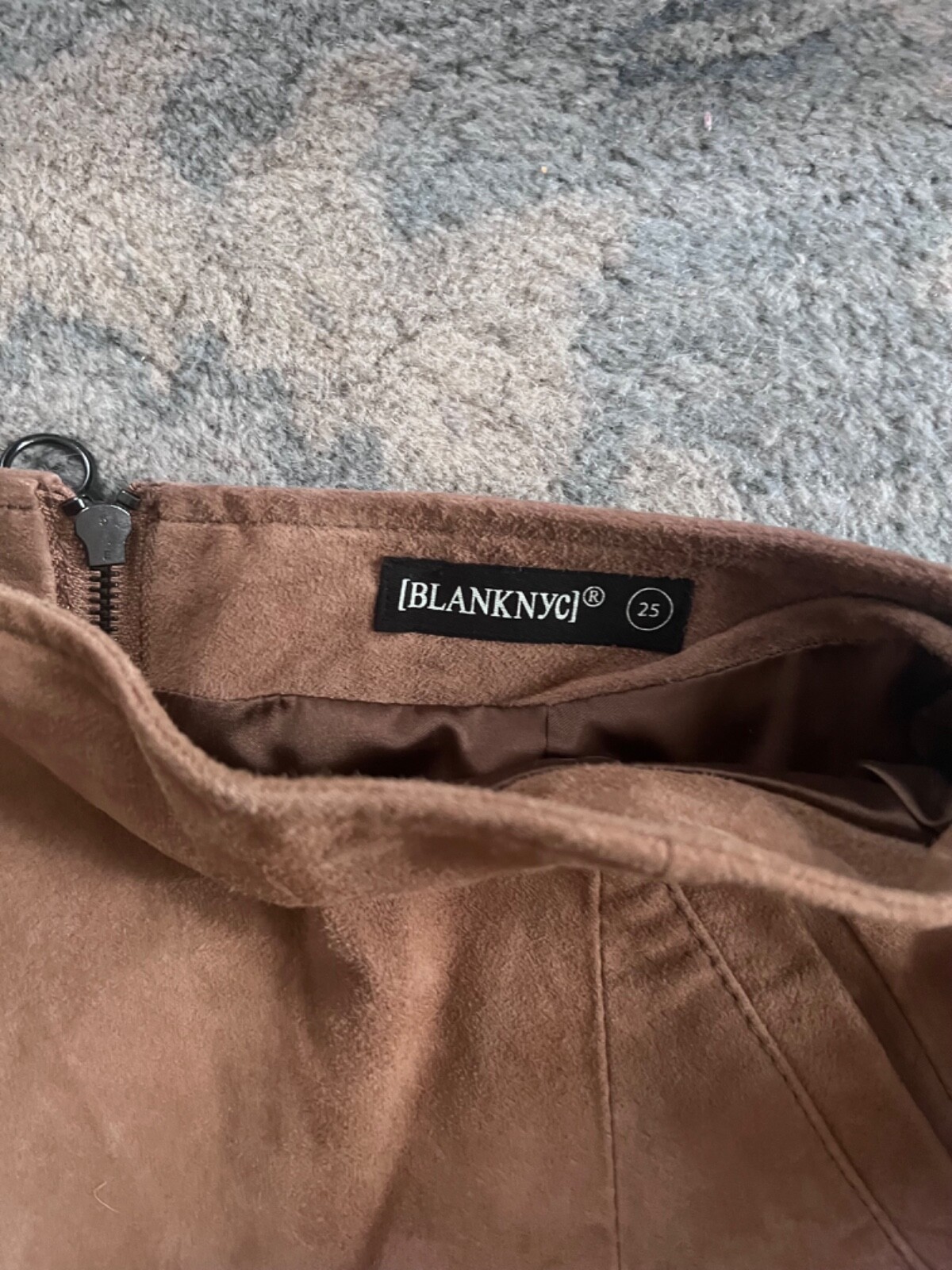 как выглядит 1970s Beige Suede Leather A-Line Slit Short Mini Skirt Size 25 фото