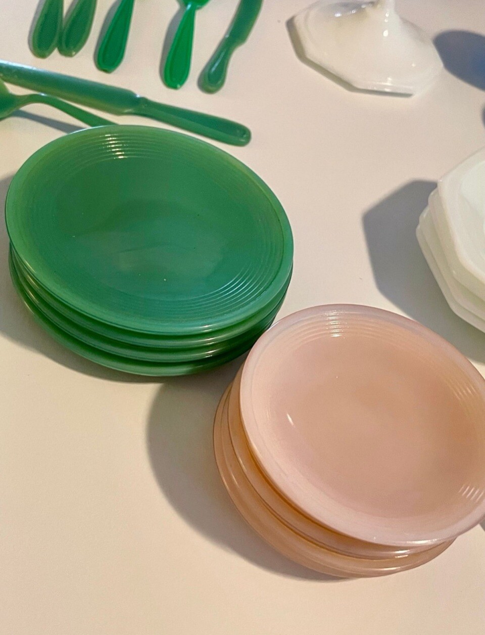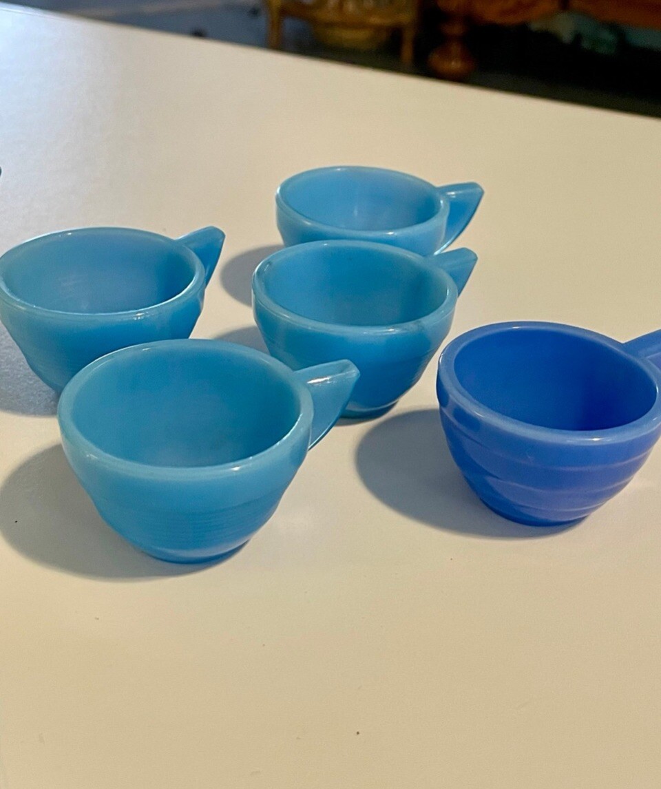 Vintage Akro Agate 31 pc CHILD's PLAY-TIME Jadeite Milk Glass Tea Set Dishes