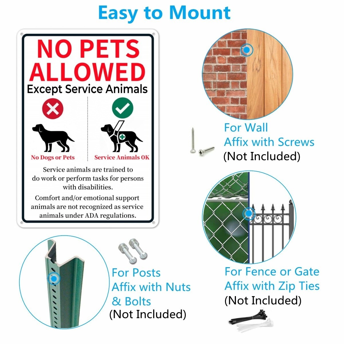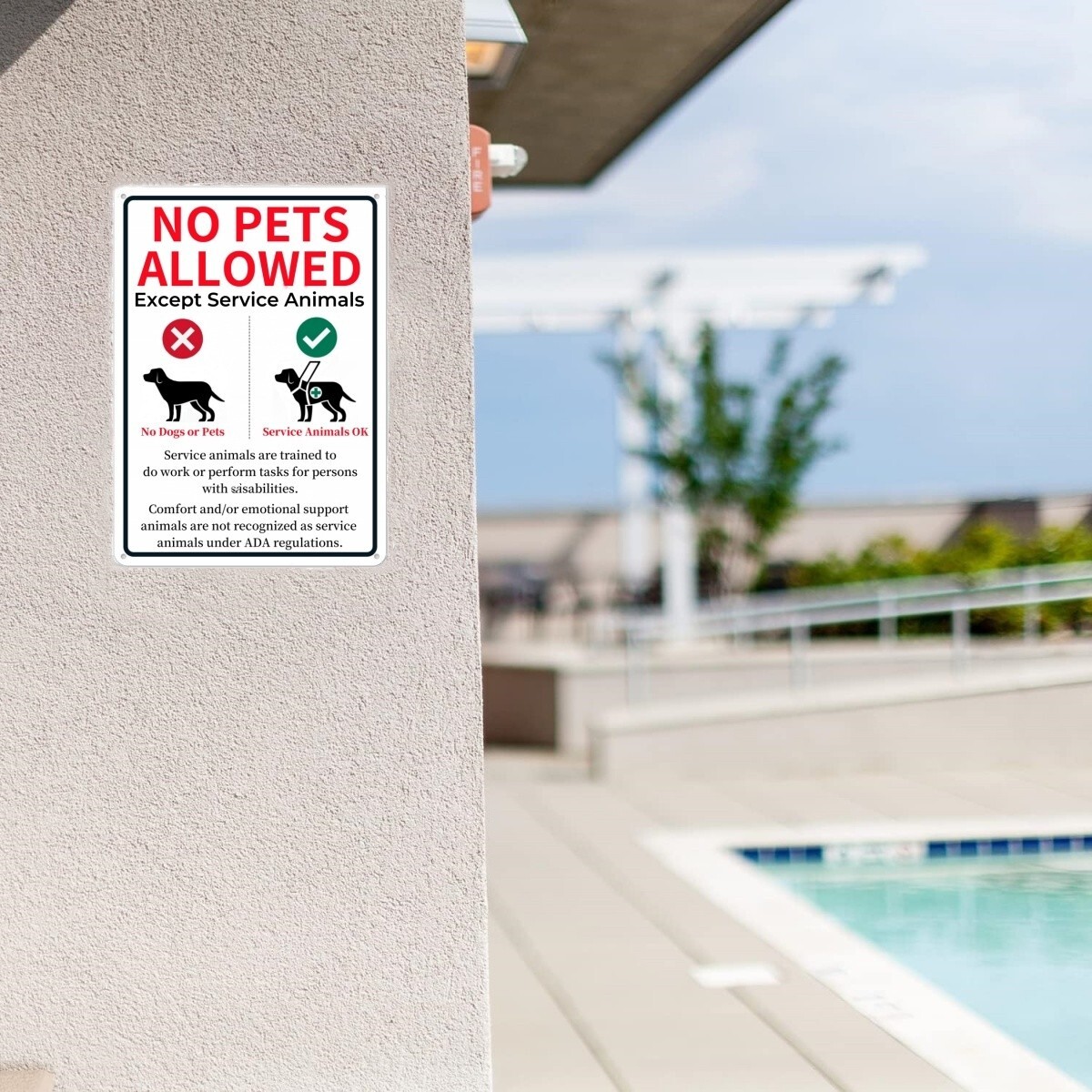 Metal No Pets Sign, 10 x 14 No Dogs Or Pets Allowed Except Service Animals