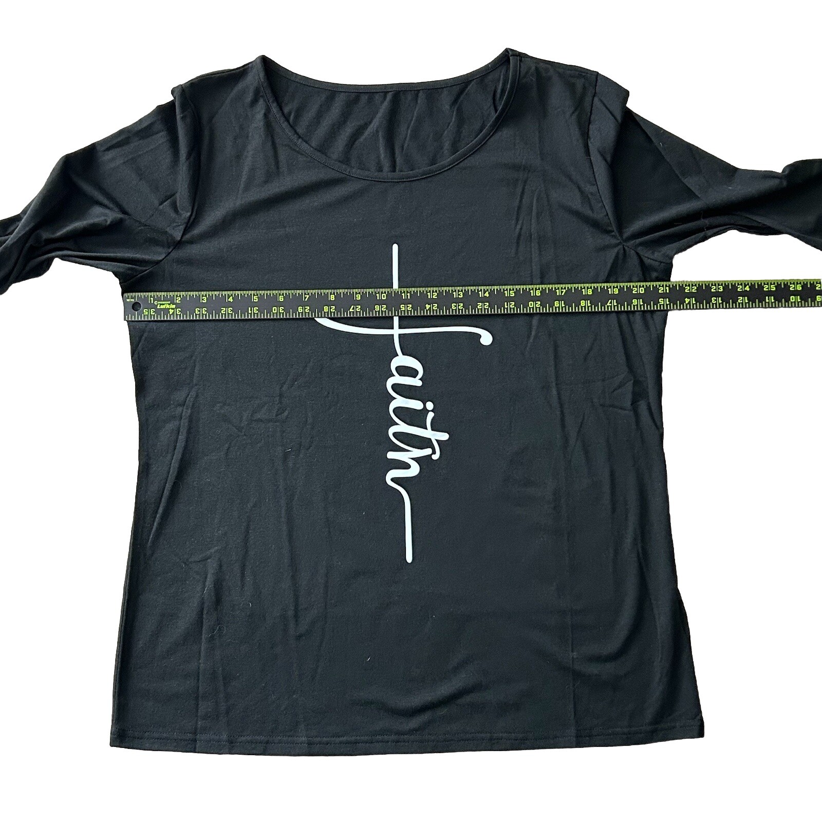 Black Long Sleeve FAITH With Cross on Right Arm And Button Cuffs XL