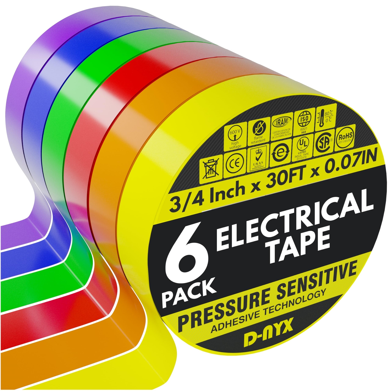 6 Pack Color Vinyl Waterproof Flame Heat Weather Resistant Electrical Tape