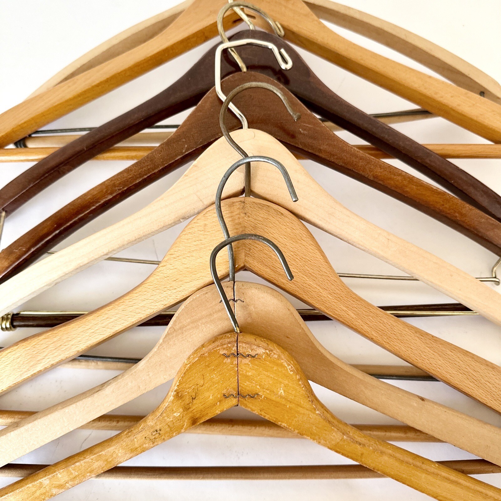 Lot Of 8 Misc Vintage Curved Wood Suit Coat Clothing Hangers organization
