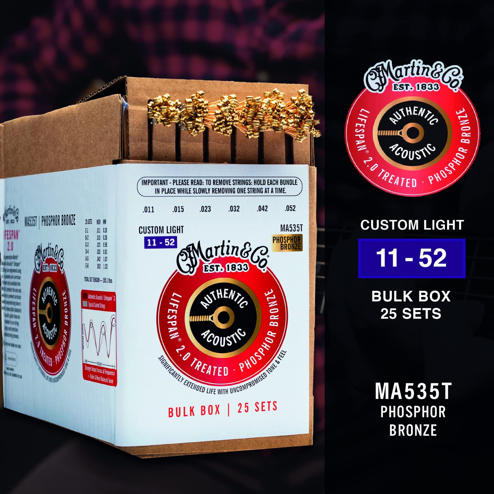 Martin Guitar Authentic Acoustic Lifespan 2.0 Guitar Strings, Acoustic Guitar...