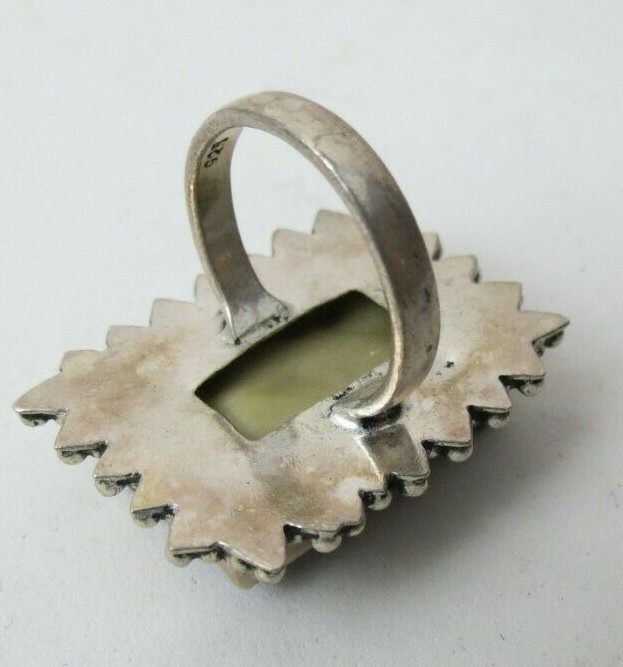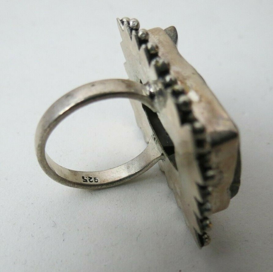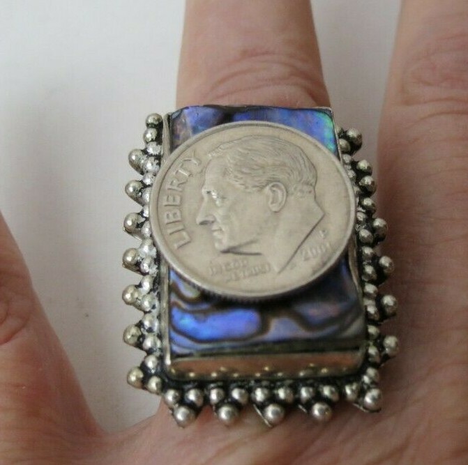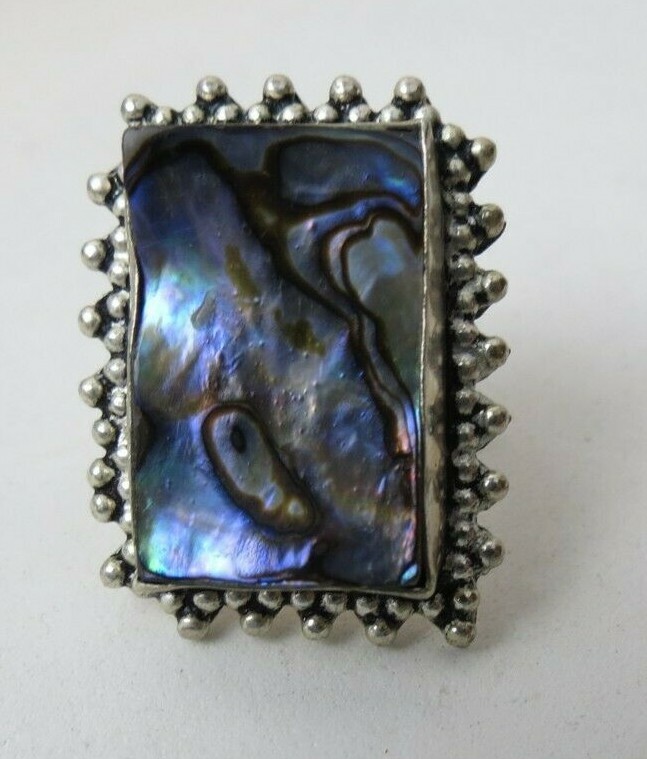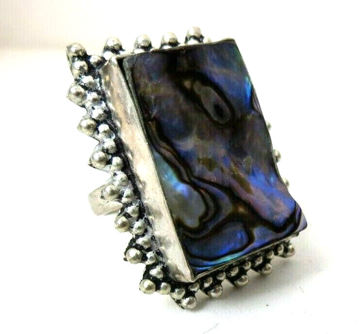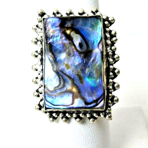 Fabulous Sterling Silver Large Size Face Colorful Abalone Shell 925 Ring Size 8
