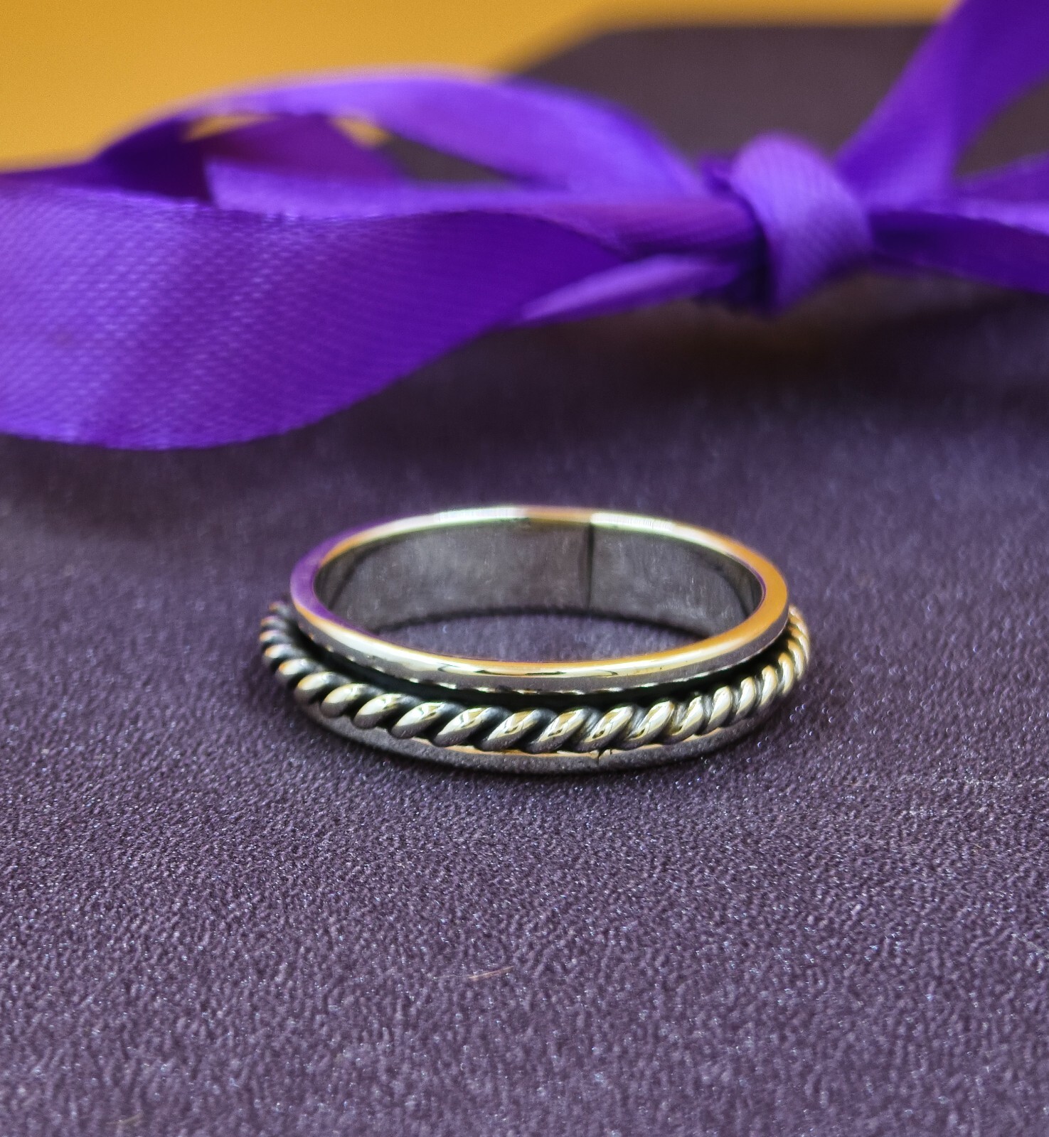 Twisted Rope Spinner Ring 925 Sterling Silver Anxiety Rings Mediation Jewelry