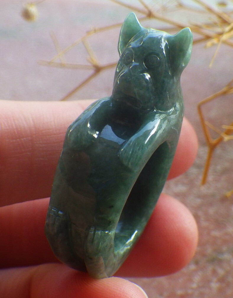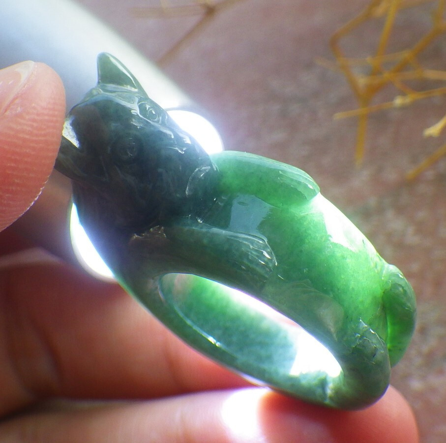 как выглядит Video Certified Green Natural A JADE Jadeite Cat RING USA. 6.5   688271 AS фото