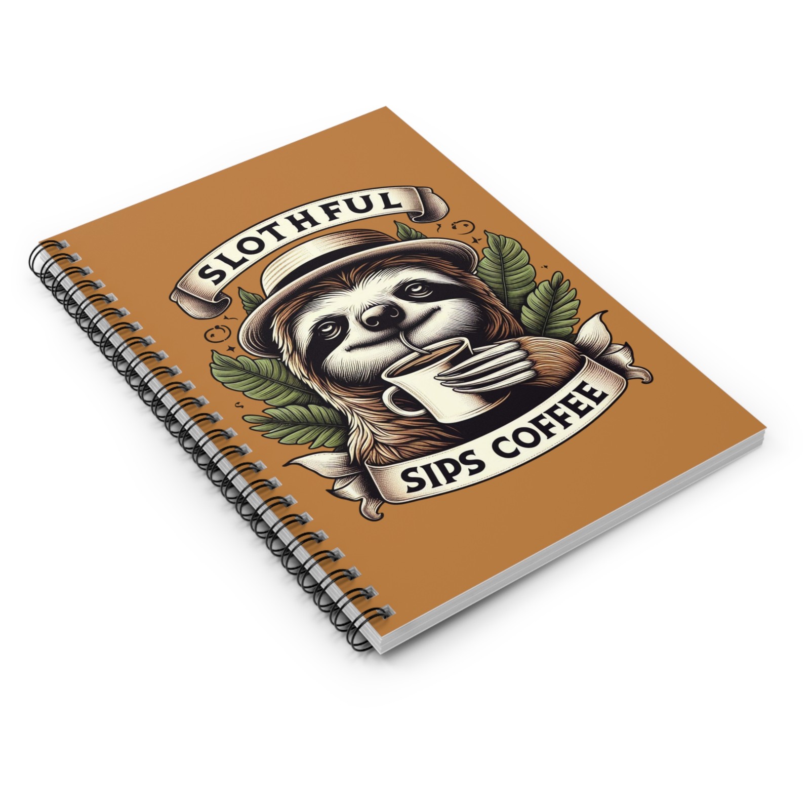 Slothful Sips Coffee Spiral Notebook, Cute Gift for Coffee Lovers, Journal