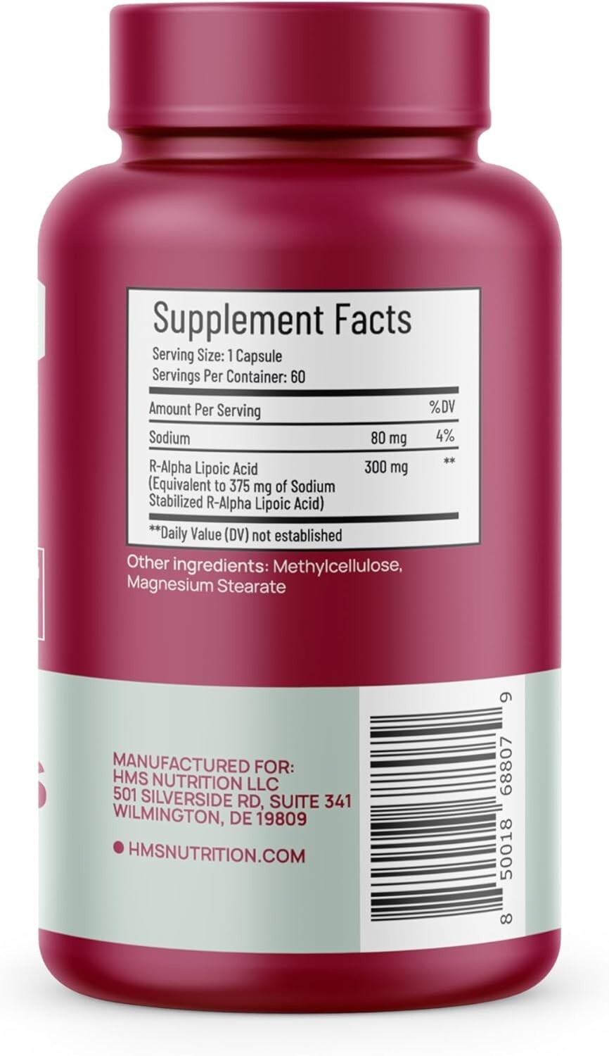 HMS Nutrition R-Lipoic Acid - NSF Certified - 300mg per Capsule 60 Count