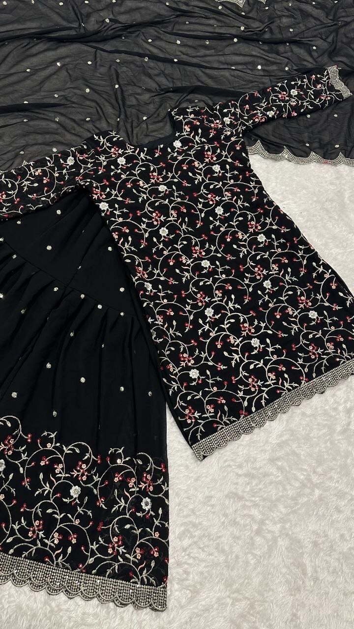Latest Beautiful Black Georgette Kurta Palazzo With Dupatta For Function