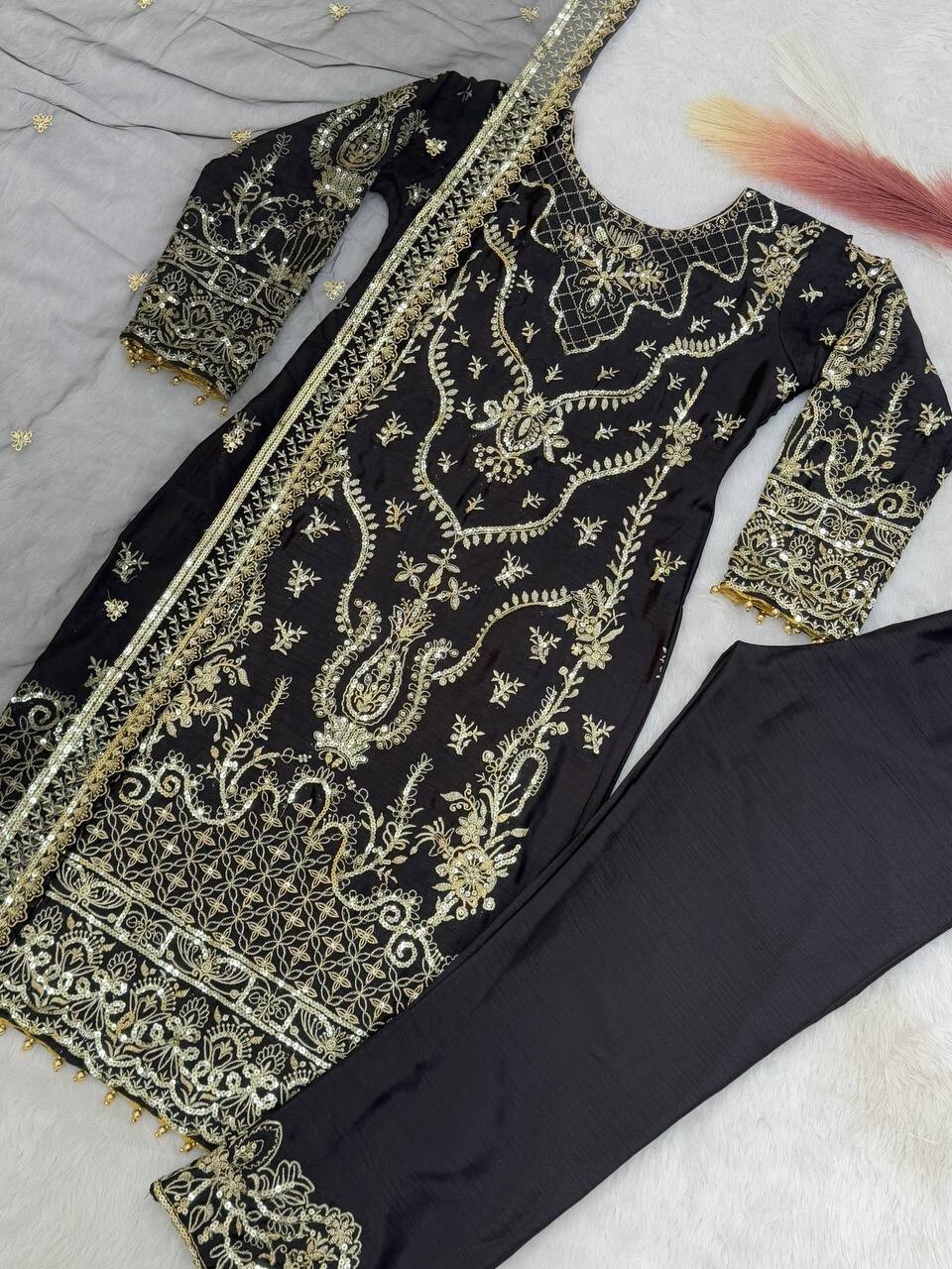 как выглядит Attractive Designer Chinon Silk Salwar Kameez With Dupatta For Wedding Party фото