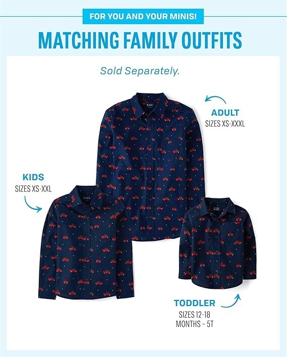 The Children's Place Men's Long Sleeve Button Up Shirt Christmas Truck Print S/P