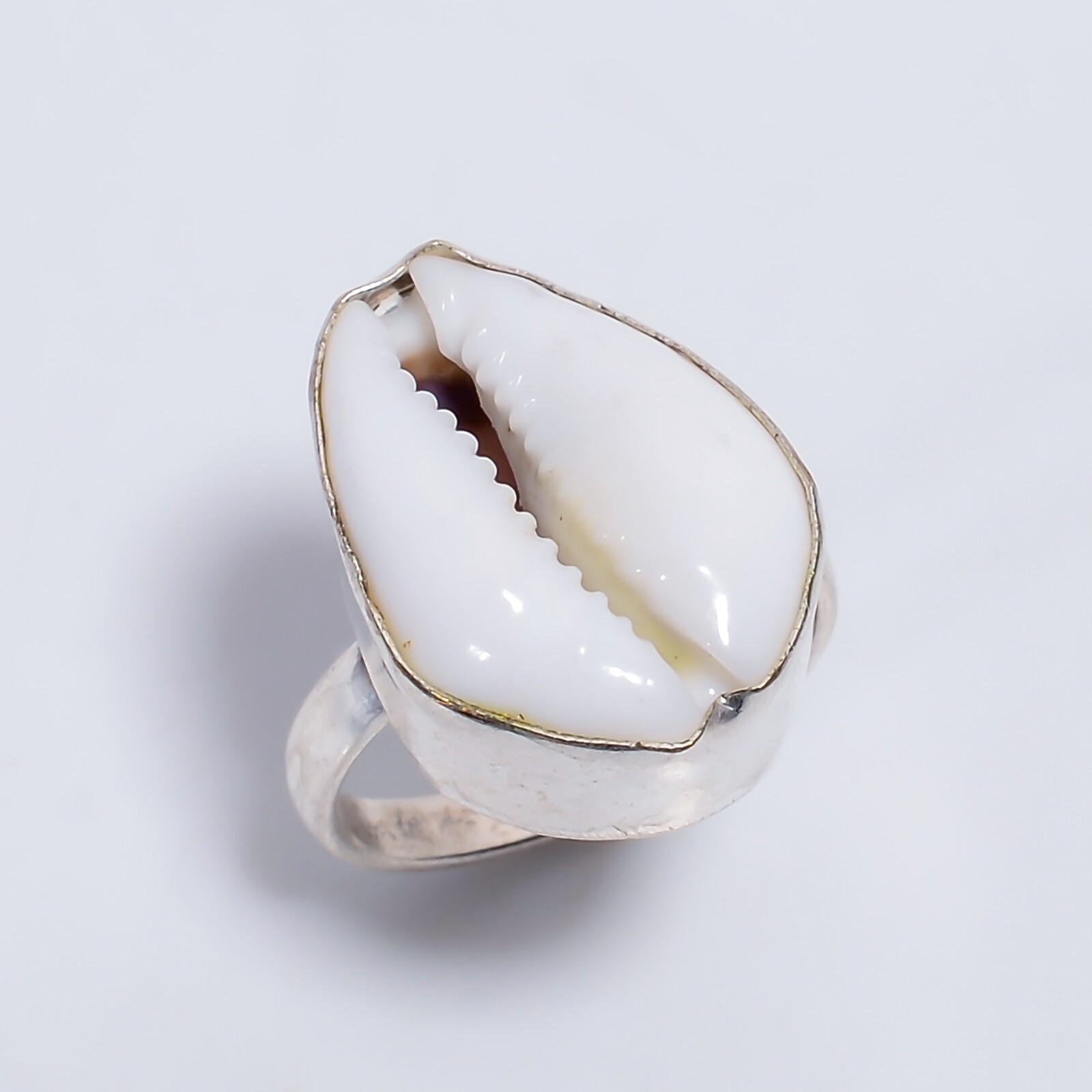 Cowrie Shell Gemstone Women Fashion Ring 8.5 US Trendy Beach Jewelry Gift