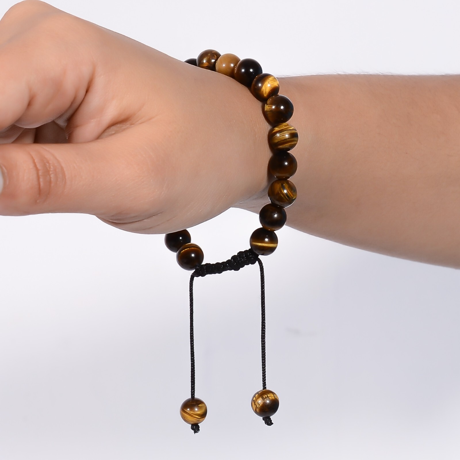 как выглядит Handmade Natural Tiger Eye Beaded Adjustable Bracelet - Luck, Wealth, Protection фото