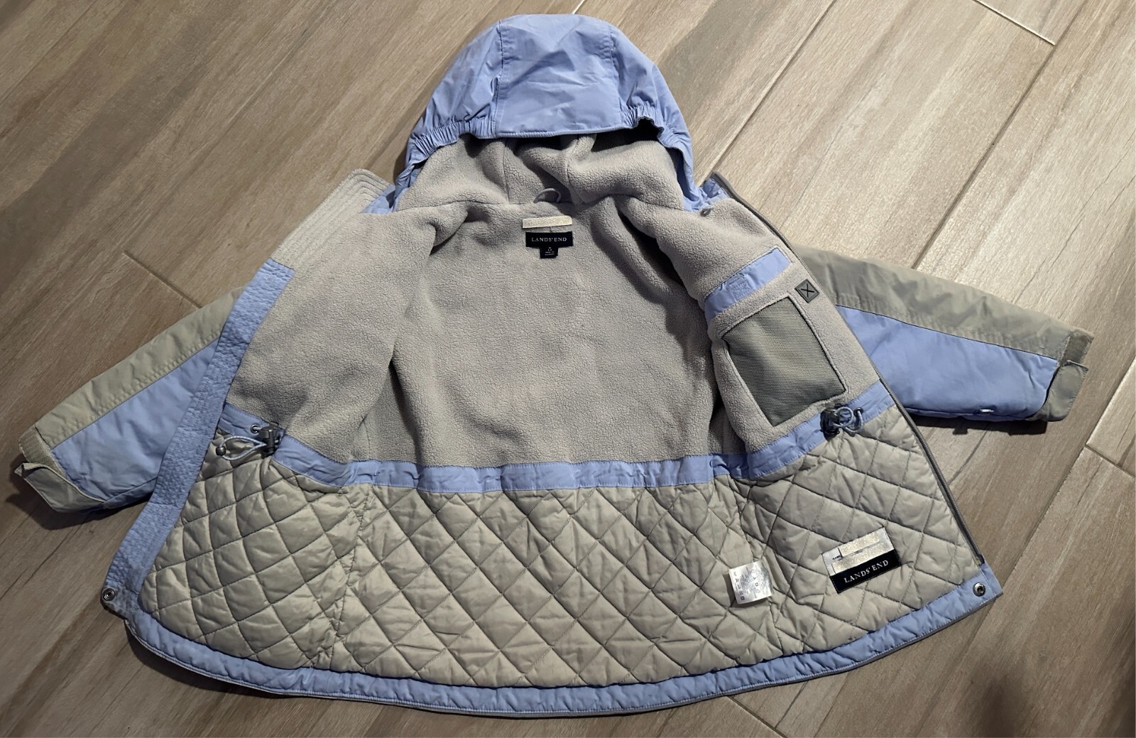 Lands End Kids Size M 5-6 Blue Winter Hooded Jacket Multi-Pocket
