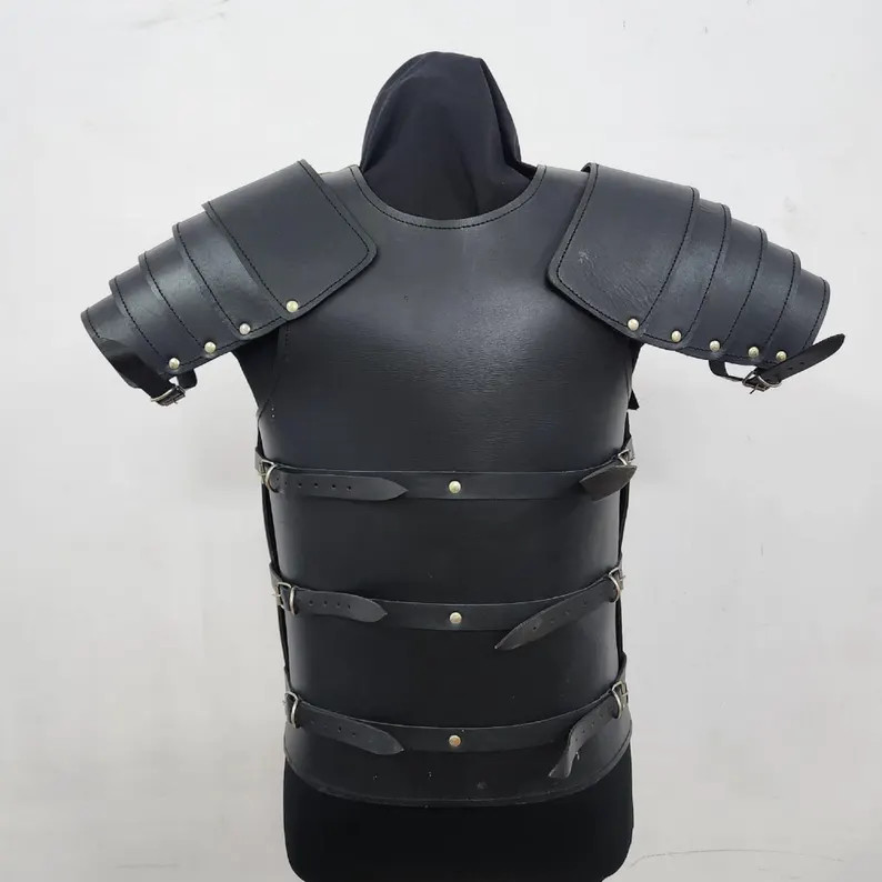 Viking Leather Chest Armor Medieval Breastplate with Removeable Spaulders arms
