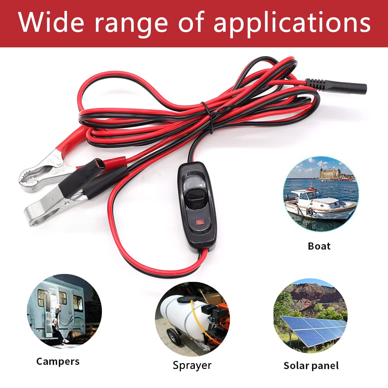 8FT SAE 16AWG Wire Harness with On/Off Switch Silver Alligator Clips,12V Spraye