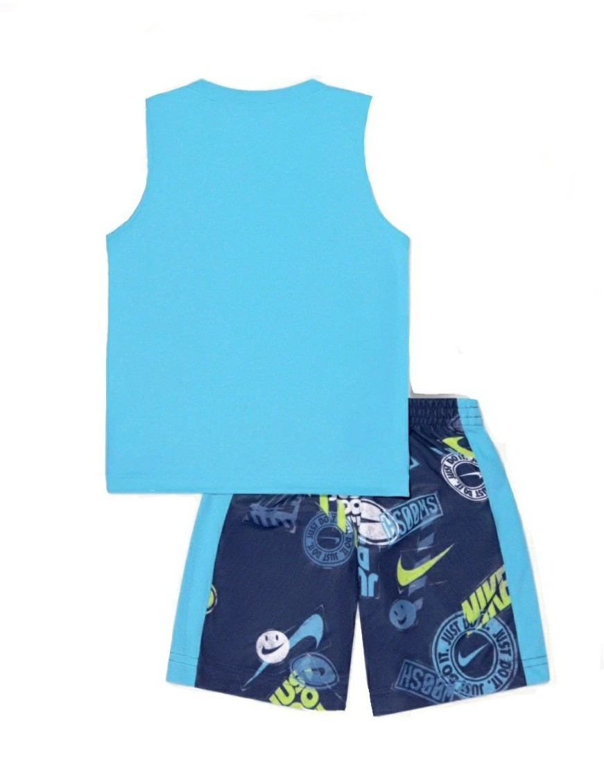 NIKE Shirt Shorts 2 Piece Blue Logo Set Boys Size 6 NWT