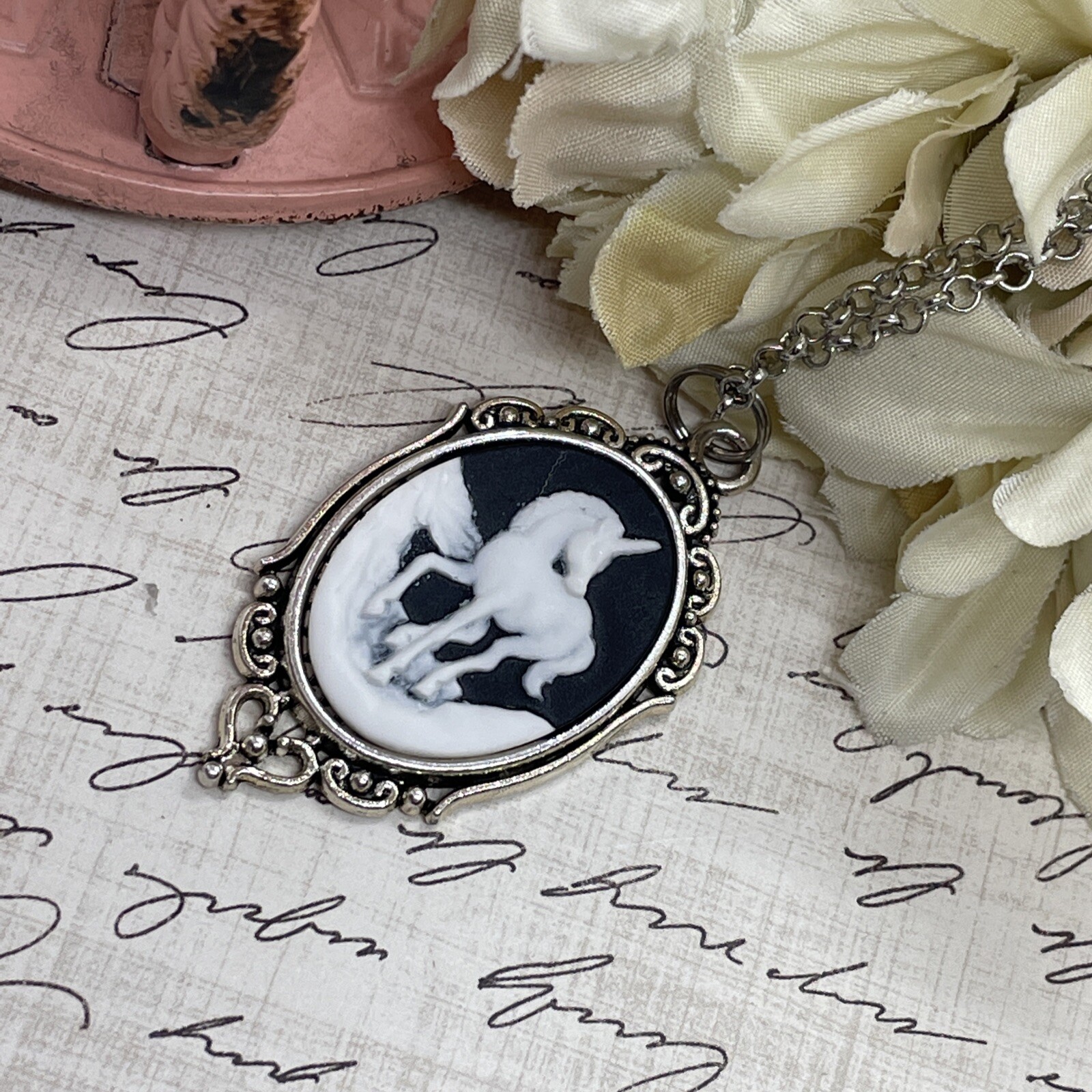 Unicorn silver Heart Wedding Party Jewelry Prom Birthday Pony necklace Cameo